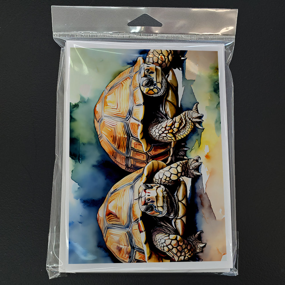 Greeting Cards Pack of 8 featuring breed specific Tortoises artwork. Celebrate special moments with Caroline's Treasures Printed Greeting Card Pack. This pack includes eight beautifully folded 5x7 cards, accompanied by eight matching white envelopes. With blank interiors, these cards provide ample space for your personalized messages and heartfelt holiday greetings. Each card features captivating full-color artwork, meticulously printed in our facility on high-quality 80 lb cover stock or 216 GSM. The super smooth finish of the white cards enhances the visual impact of the artwork, creating a truly stunning presentation. Designed by our talented in-house artists or licensed artists, the artwork on these cards showcases their creativity and attention to detail. From vibrant illustrations to captivating designs, each card tells its own unique story. Whether it's for birthdays, anniversaries, holidays, or any special occasion, Caroline's Treasures Greeting Card Pack is the perfect way to convey your heartfelt sentiments. Share joy, love, and warm wishes with these exquisite cards and make every moment unforgettable.