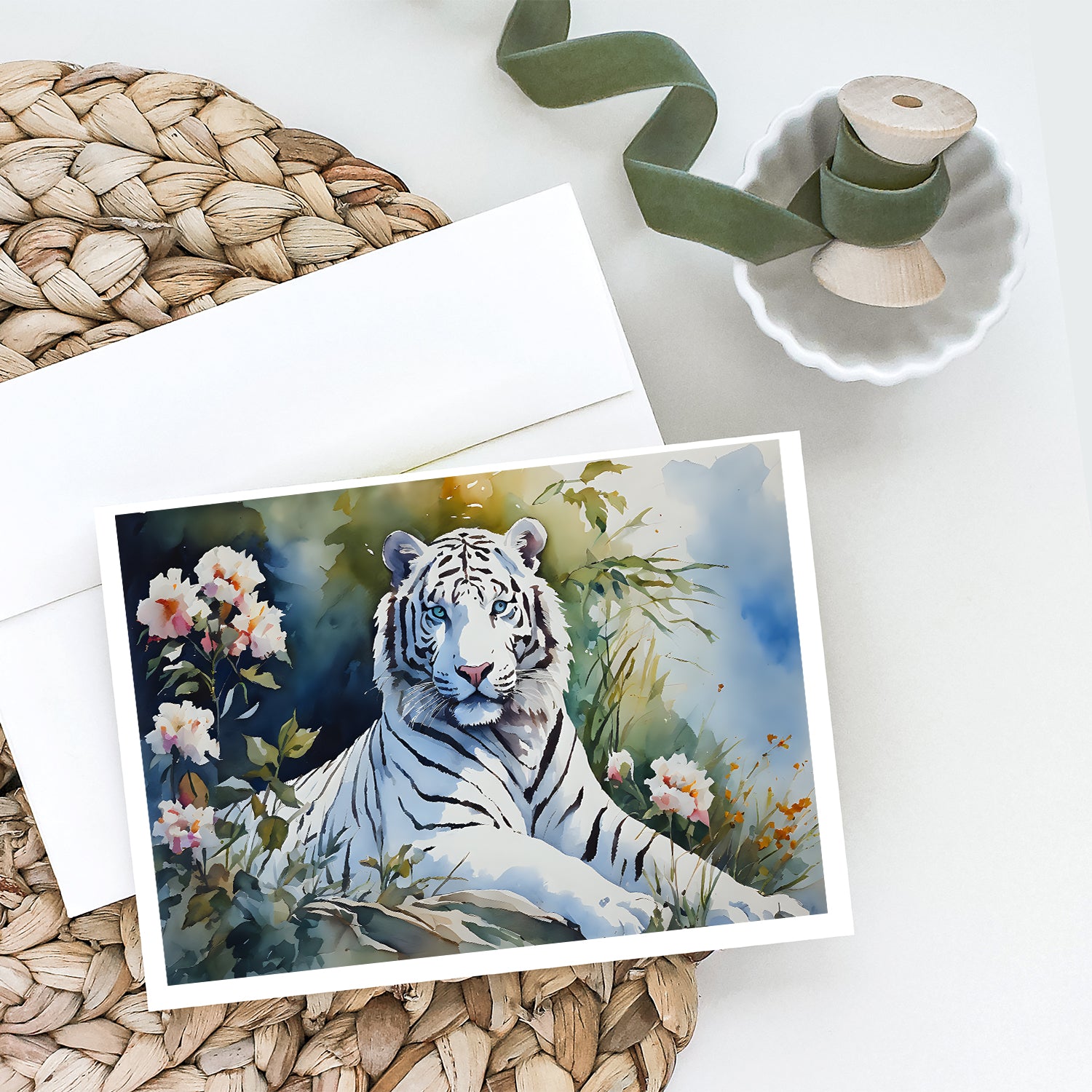 Greeting Cards Pack of 8 featuring breed specific Tiger artwork. Celebrate special moments with Caroline's Treasures Printed Greeting Card Pack. This pack includes eight beautifully folded 5x7 cards, accompanied by eight matching white envelopes. With blank interiors, these cards provide ample space for your personalized messages and heartfelt holiday greetings. Each card features captivating full-color artwork, meticulously printed in our facility on high-quality 80 lb cover stock or 216 GSM. The super smooth finish of the white cards enhances the visual impact of the artwork, creating a truly stunning presentation. Designed by our talented in-house artists or licensed artists, the artwork on these cards showcases their creativity and attention to detail. From vibrant illustrations to captivating designs, each card tells its own unique story. Whether it's for birthdays, anniversaries, holidays, or any special occasion, Caroline's Treasures Greeting Card Pack is the perfect way to convey your heartfelt sentiments. Share joy, love, and warm wishes with these exquisite cards and make every moment unforgettable.