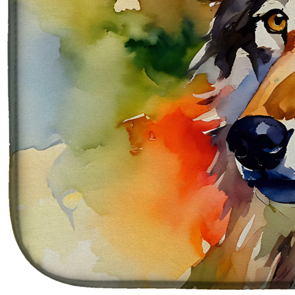 Dish Drying Mat featuring breed specific Wolves artwork. Say goodbye to messy countertops and soggy dish towels with our innovative dish drying mat. Our high-quality dish drying pad is designed to keep your countertops dry while offering a stylish and efficient solution. Whether you're air drying dishes, glasses, stemware, silverware, pots, pans, bottles, or even fruits and vegetables, our dish mat is the perfect choice. The 14 inches x 22 inches size fits most counters and dish drying racks, and the non-slip design ensures stability. Made with water-absorbent polyester and a polyurethane foam insert, our dish drying mat is not only functional but also durable. It's machine washable and printed in the USA for long-lasting use. The beautiful artwork adds flair to your kitchen decor, making it a perfect housewarming gift or present for any occasion. Upgrade your kitchen experience with our absorbent and versatile dish drying mat.