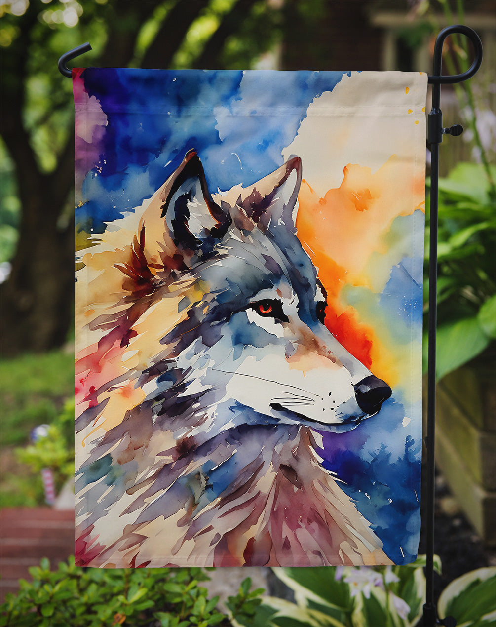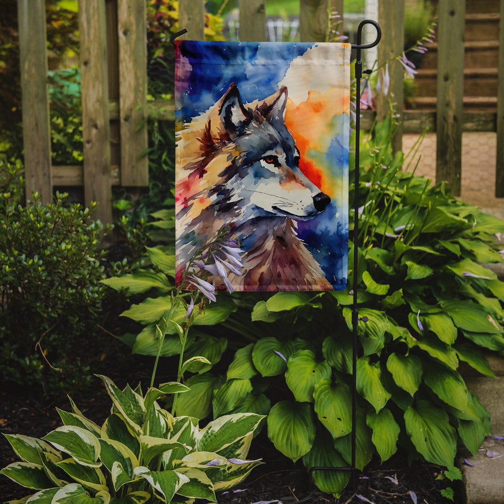 Garden Flag featuring breed specific Wolves artwork. Enhance the beauty of your garden, patio, or yard with Caroline's Treasures Decorative Garden Flag, proudly made in the USA. Crafted from two pieces of thick, double-sided polyester fabric, this 2-ply garden flag is designed to withstand various weather conditions, making it water-resistant and weatherproof. Featuring correctly readable words on both sides, this garden flag offers a delightful visual experience from any angle. With its heavier weight, it stands out among other garden flags, ensuring stability and durability even in wind, rain, and snow. Measuring approximately 11 1/4 inches by 15 1/2 inches, this flag allows you to personalize your outdoor decor. It comes with a 1 1/2-inch sleeve sewn in, allowing easy attachment to any standard garden flag stand or garden size porch hanger (sold separately). Make a statement in your outdoor space with Caroline's Treasures Decorative Garden Flag, a vibrant and high-quality flag that adds color and personality to your surroundings. Proudly made in the USA, it's a symbol of quality craftsmanship and attention to detail.