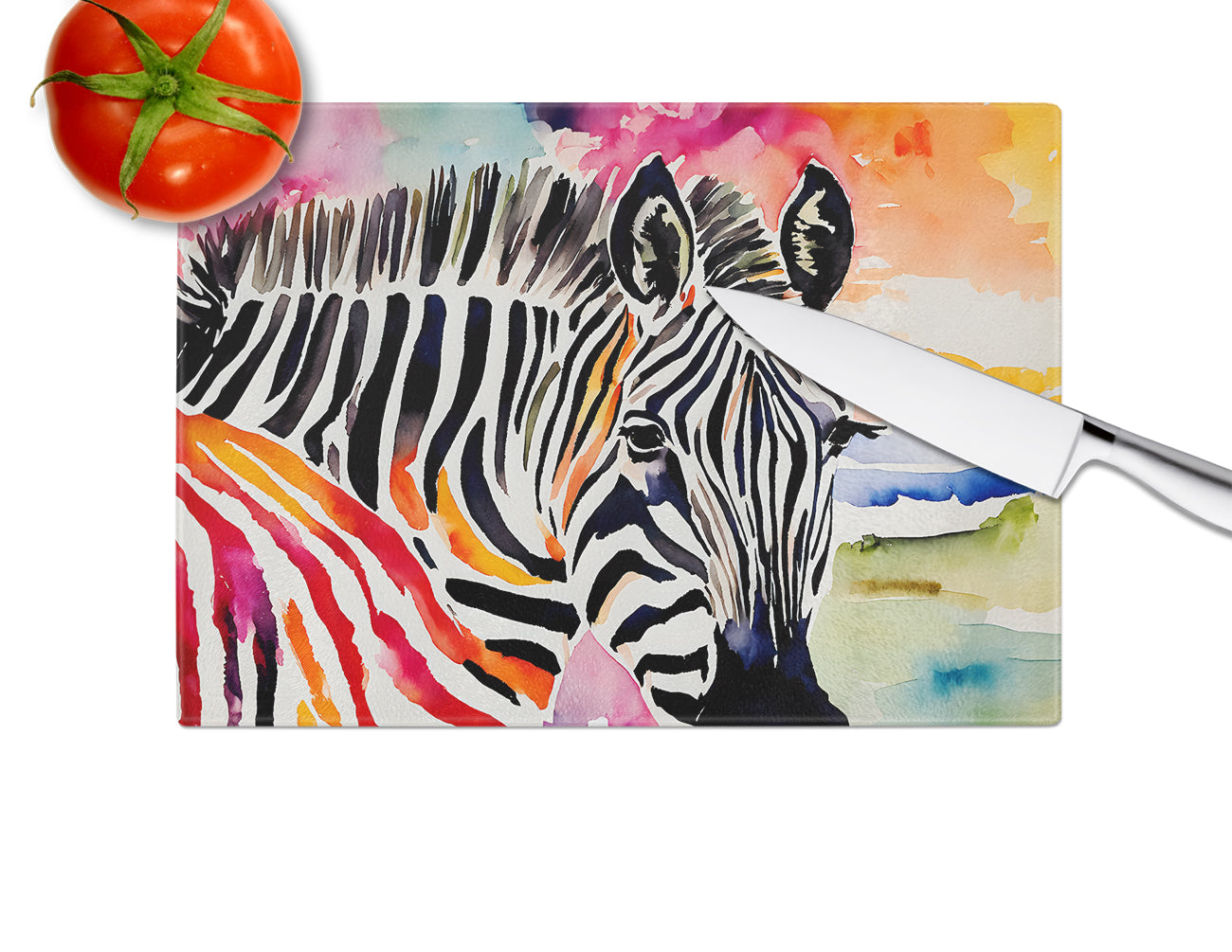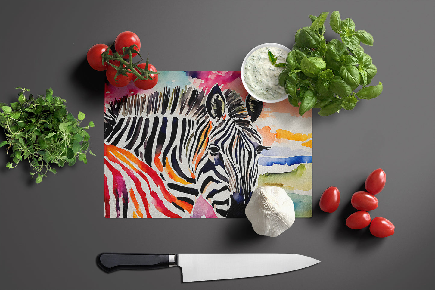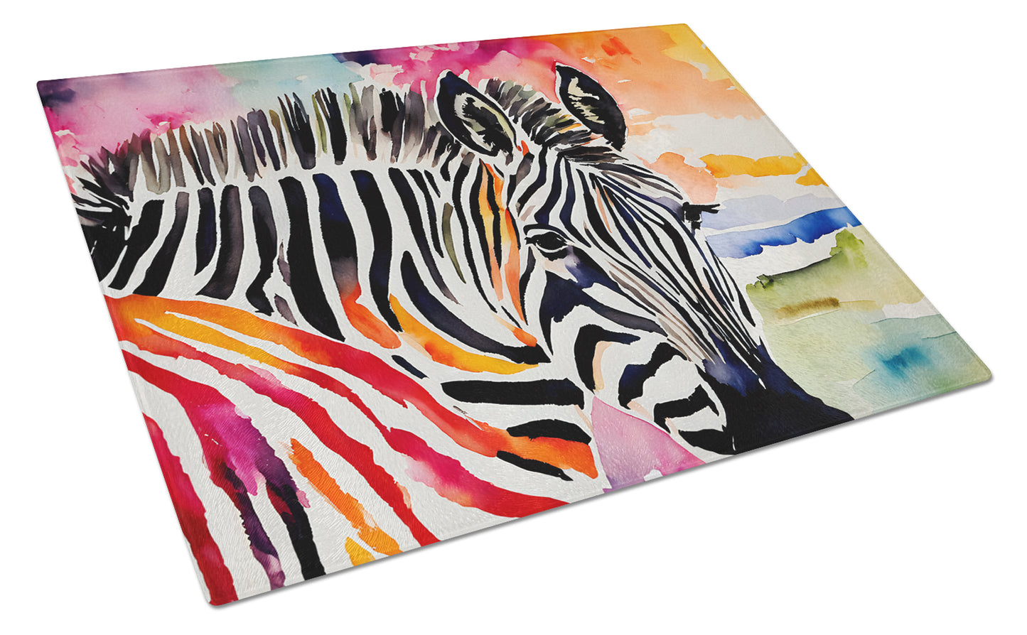 Glass Cutting Board featuring breed specific Zebra artwork. Introduce your kitchen to the vibrant, large Decorative Glass Cutting Board from Caroline's Treasures. Crafted from resilient tempered glass, this board is not only a utilitarian necessity but also a colorful art piece. With its generous dimensions of 15 inches in height and 12 inches in length, it offers ample space for all your cutting needs. Every piece showcases captivating artwork from distinguished artists, bringing an aesthetic edge to your kitchen. Beyond its attractive design, this cutting board ensures your countertop stays pristine and unscathed, owing to its heat-resistant properties. Engineered with user convenience in mind, it features non-skid feet for stability, and rounded corners for additional safety. Its robust construction renders it virtually unbreakable, guaranteeing longevity. The board comes with protective feet bumpers, maintaining its position during use. This product is recommended to be hand washed only. Proudly printed and assembled in the United States, this cutting board exemplifies superior craftsmanship. With Caroline's Treasures' Decorative Glass Cutting Board, you're investing in a blend of functionality and artistic flair.