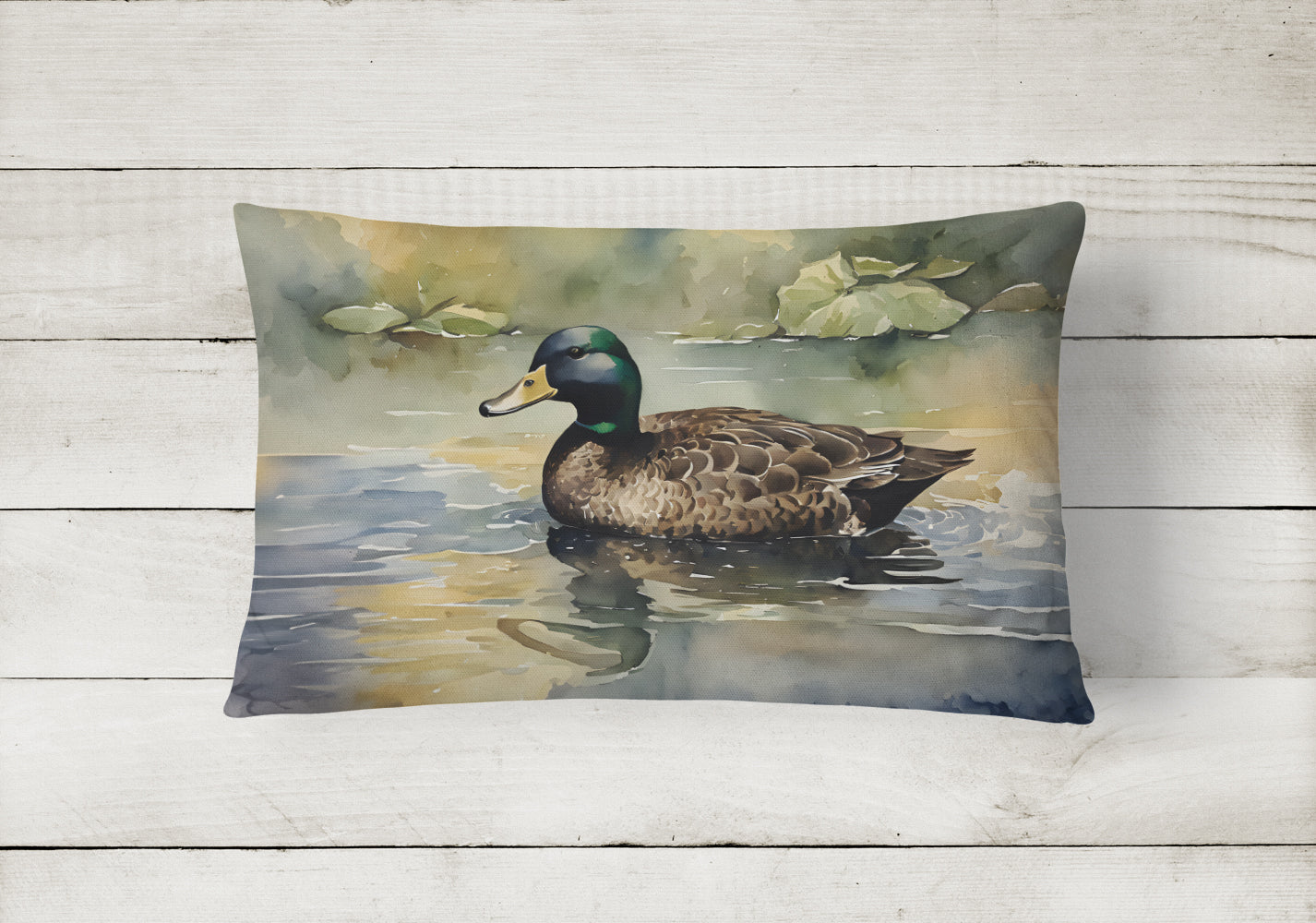 Throw Pillow featuring breed specific American Black Duck artwork. Embrace the fusion of comfort and style with Caroline's Treasures Fabric Decorative Pillow. This 12x16 inch outdoor pillow is designed to complement your patio furniture, adding a splash of color and artistry to your outdoor setting. Constructed with a 100% Polyester Fabric pillow sham filled with a plush pillow form, this cushion is as comfortable as it is durable. Our outdoor pillow utilizes a novel fabric, meticulously woven for enhanced water resistance. This soft canvas material is equally suited for your indoor couch as well as outdoor settings such as the patio, porch, or veranda. To ensure enduring vibrance, we employ colorfast dyes resistant to fading even when subjected to weather elements. The making of this pillow involves the delicate sewing together of three fabric pieces to create a sham, into which a polyester insert is carefully placed. The result is an overstuffed pillow that tenaciously holds its shape. With both the sham and the pillow insert crafted in the United States, these handmade pillows are a testament to superior local craftsmanship. Note that as these pillows are handmade, sizes may slightly vary, enhancing their unique appeal. Enjoy comfort in style with Caroline's Treasures Fabric Decorative Pillow.