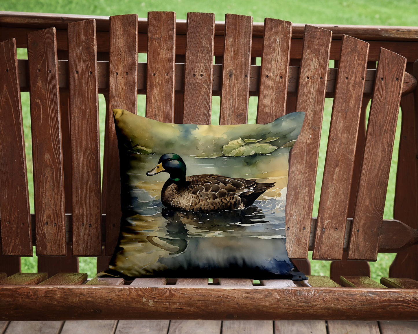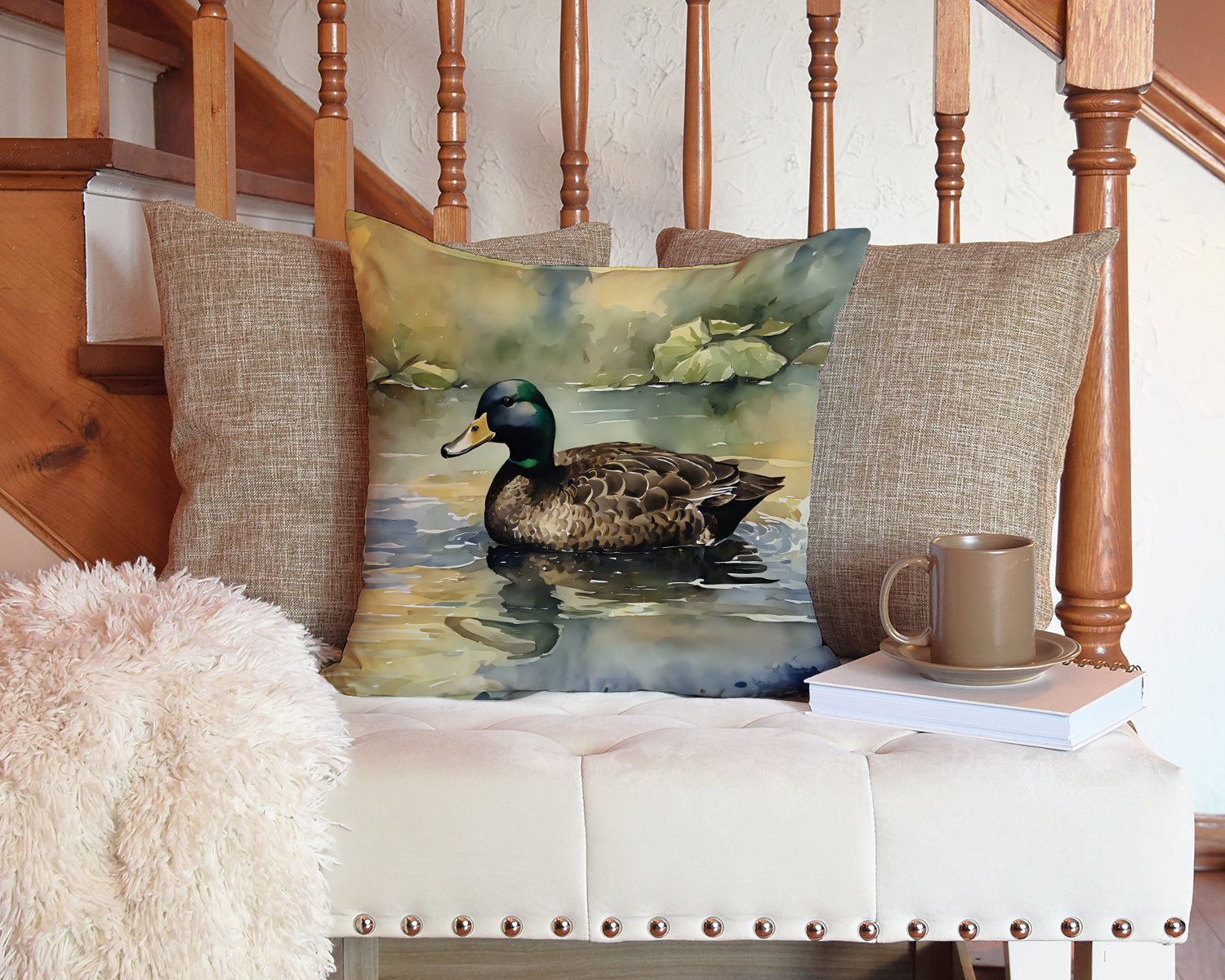Throw Pillow featuring breed specific American Black Duck artwork. Add a touch of vibrancy and comfort to your outdoor seating with Caroline's Treasures Fabric Decorative Pillow. Measuring approximately 14 inches by 14 inches, this outdoor pillow is crafted to elevate the appeal of your patio furniture, infusing it with vivid color and artistic flair. The pillow includes a 100% Polyester Fabric sham filled with a quality pillow form to provide superior comfort. Innovatively made from our brand new material, specifically woven for its water resistance, this pillow is designed for durability. The soft canvas fabric offers versatility in use, fit for your indoor couch or your outdoor patio, porch, or veranda. The fabric is dyed with colorfast dyes built for resilience against weather conditions, ensuring the pillow retains its beauty over time. Constructed by sewing three fabric pieces to create a sham, the polyester insert is then nestled inside to form the pillow, resulting in an overstuffed pillow that maintains its shape. Both the sham and the pillow insert are proudly made in the United States. As the pillows are handcrafted, there may be minor variations in size, further enhancing their unique charm. Experience comfort in style with Caroline's Treasures Fabric Decorative Pillow.