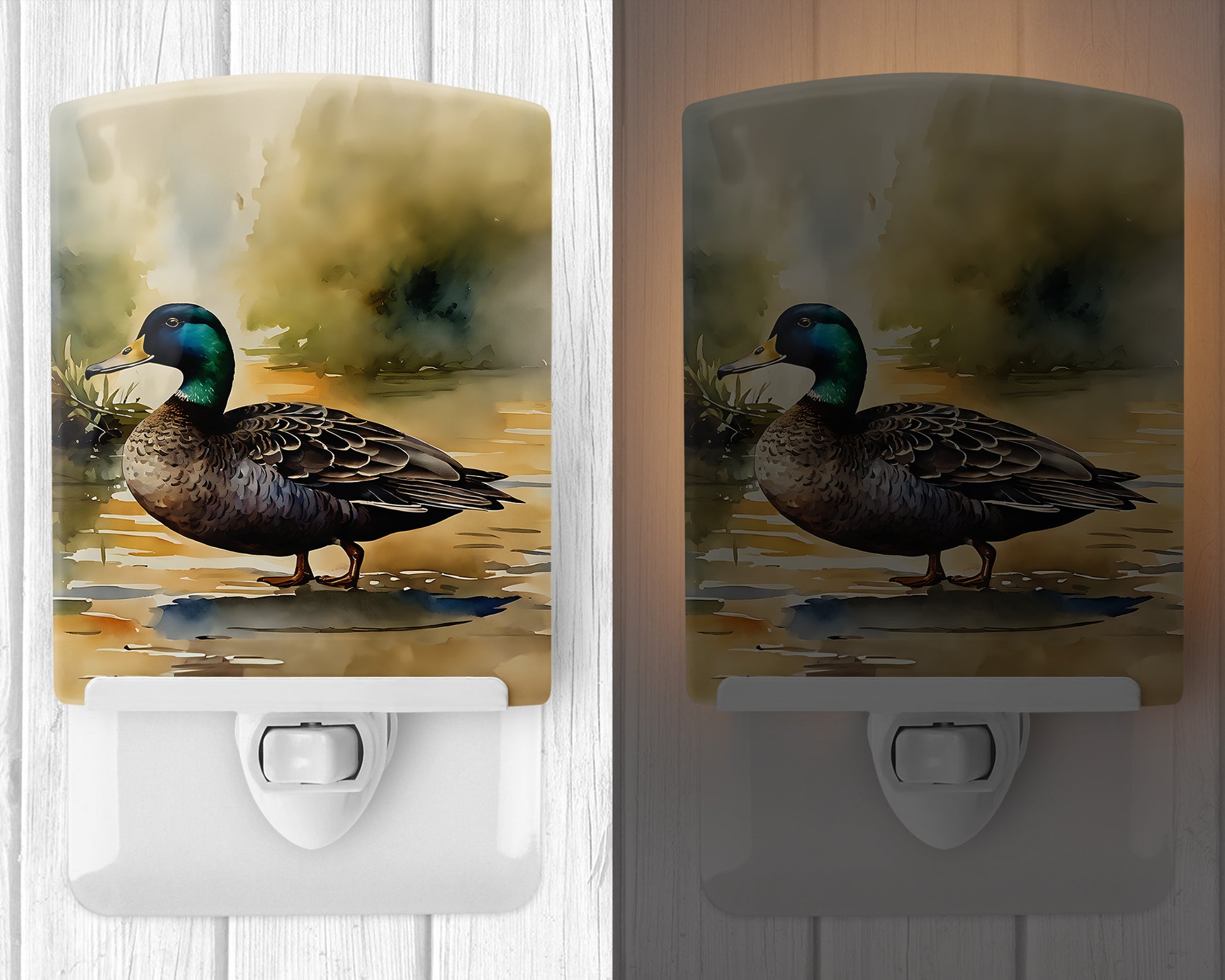 Ceramic Night Light featuring breed specific American Black Duck artwork. Introduce a splash of artistic flair and subtle illumination to your space with the Decorative Ceramic Night Light from Caroline's Treasures. Perfect for any room, this night light seamlessly blends functionality with an aesthetic appeal, offering a stylish solution to brighten up dark corners of your home or office. Boasting a six-inch high by four-inch wide ceramic tile at the front, it showcases vivid, full-color artwork from distinguished artists, transforming a simple utility into a vibrant art piece. The artwork is securely encased in a robust metal holder, ensuring durability and longevity. Two screws are provided to firmly affix the tile into the holder. The holder extends three inches deep, housing an included bulb that emits a soft, welcoming glow. This product meets all safety standards, as evidenced by its UL approval. Proudly made in the United States from imported components, this Decorative Ceramic Night Light is not just a functional device; it's a statement piece that enhances the ambiance of your surroundings.