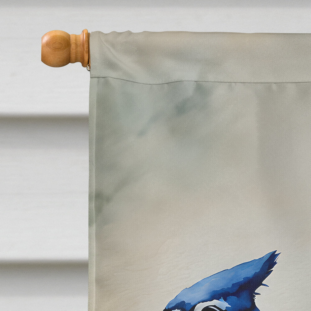 House Flag featuring breed specific Blue Jay artwork. Presenting our Heavy Duty Polyester House Size Decorative Sleeve Pole Flag, a vibrant addition to enhance the aesthetic appeal of your home. This large decorative flag, measuring approximately 28 x 40 inches, offers ample coverage and visibility. Each flag is meticulously sewn and made individually, ensuring a unique piece that may slightly vary in size. It's a sleeve pole flag, designed to fit a standard decorative flag pole effortlessly. Please note that the flag pole and bracket are not included and should be purchased separately. What sets our flag apart is its dual-sided print. The design is mirrored on both sides of the fabric, allowing for uniform visibility regardless of the angle. Printed in full color, our flag showcases vibrant hues that truly stand out. To ensure lasting vibrancy and durability, the dyes are heat-set into the fabric. This ensures your flag remains bright and captivating through various weather conditions. Elevate the look of your home with our Heavy Duty Polyester House Size Decorative Sleeve Pole Flag!