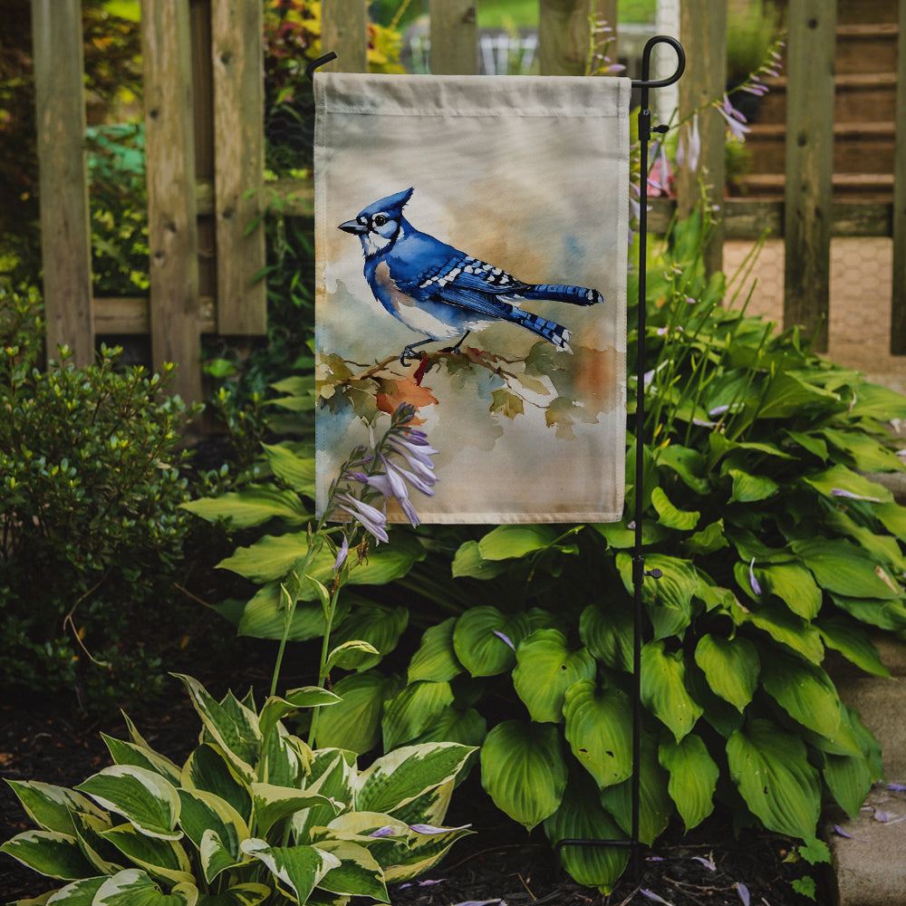 Garden Flag featuring breed specific Blue Jay artwork. Enhance the beauty of your garden, patio, or yard with Caroline's Treasures Decorative Garden Flag, proudly made in the USA. Crafted from two pieces of thick, double-sided polyester fabric, this 2-ply garden flag is designed to withstand various weather conditions, making it water-resistant and weatherproof. Featuring correctly readable words on both sides, this garden flag offers a delightful visual experience from any angle. With its heavier weight, it stands out among other garden flags, ensuring stability and durability even in wind, rain, and snow. Measuring approximately 11 1/4 inches by 15 1/2 inches, this flag allows you to personalize your outdoor decor. It comes with a 1 1/2-inch sleeve sewn in, allowing easy attachment to any standard garden flag stand or garden size porch hanger (sold separately). Make a statement in your outdoor space with Caroline's Treasures Decorative Garden Flag, a vibrant and high-quality flag that adds color and personality to your surroundings. Proudly made in the USA, it's a symbol of quality craftsmanship and attention to detail.