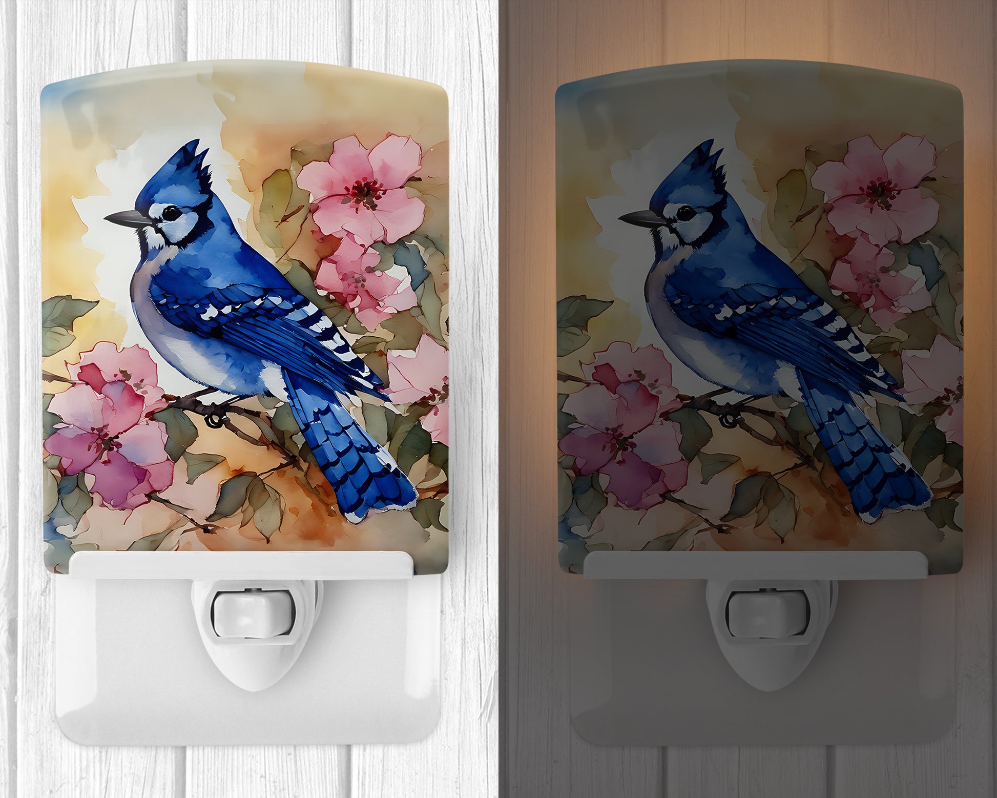 Ceramic Night Light featuring breed specific Blue Jay artwork. Introduce a splash of artistic flair and subtle illumination to your space with the Decorative Ceramic Night Light from Caroline's Treasures. Perfect for any room, this night light seamlessly blends functionality with an aesthetic appeal, offering a stylish solution to brighten up dark corners of your home or office. Boasting a six-inch high by four-inch wide ceramic tile at the front, it showcases vivid, full-color artwork from distinguished artists, transforming a simple utility into a vibrant art piece. The artwork is securely encased in a robust metal holder, ensuring durability and longevity. Two screws are provided to firmly affix the tile into the holder. The holder extends three inches deep, housing an included bulb that emits a soft, welcoming glow. This product meets all safety standards, as evidenced by its UL approval. Proudly made in the United States from imported components, this Decorative Ceramic Night Light is not just a functional device; it's a statement piece that enhances the ambiance of your surroundings.