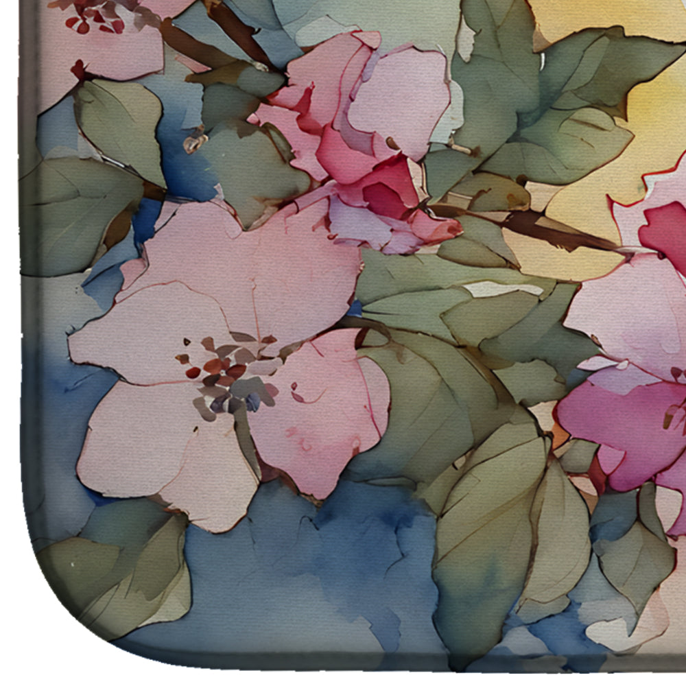 Dish Drying Mat featuring breed specific Blue Jay artwork. Say goodbye to messy countertops and soggy dish towels with our innovative dish drying mat. Our high-quality dish drying pad is designed to keep your countertops dry while offering a stylish and efficient solution. Whether you're air drying dishes, glasses, stemware, silverware, pots, pans, bottles, or even fruits and vegetables, our dish mat is the perfect choice. The 14 inches x 22 inches size fits most counters and dish drying racks, and the non-slip design ensures stability. Made with water-absorbent polyester and a polyurethane foam insert, our dish drying mat is not only functional but also durable. It's machine washable and printed in the USA for long-lasting use. The beautiful artwork adds flair to your kitchen decor, making it a perfect housewarming gift or present for any occasion. Upgrade your kitchen experience with our absorbent and versatile dish drying mat.