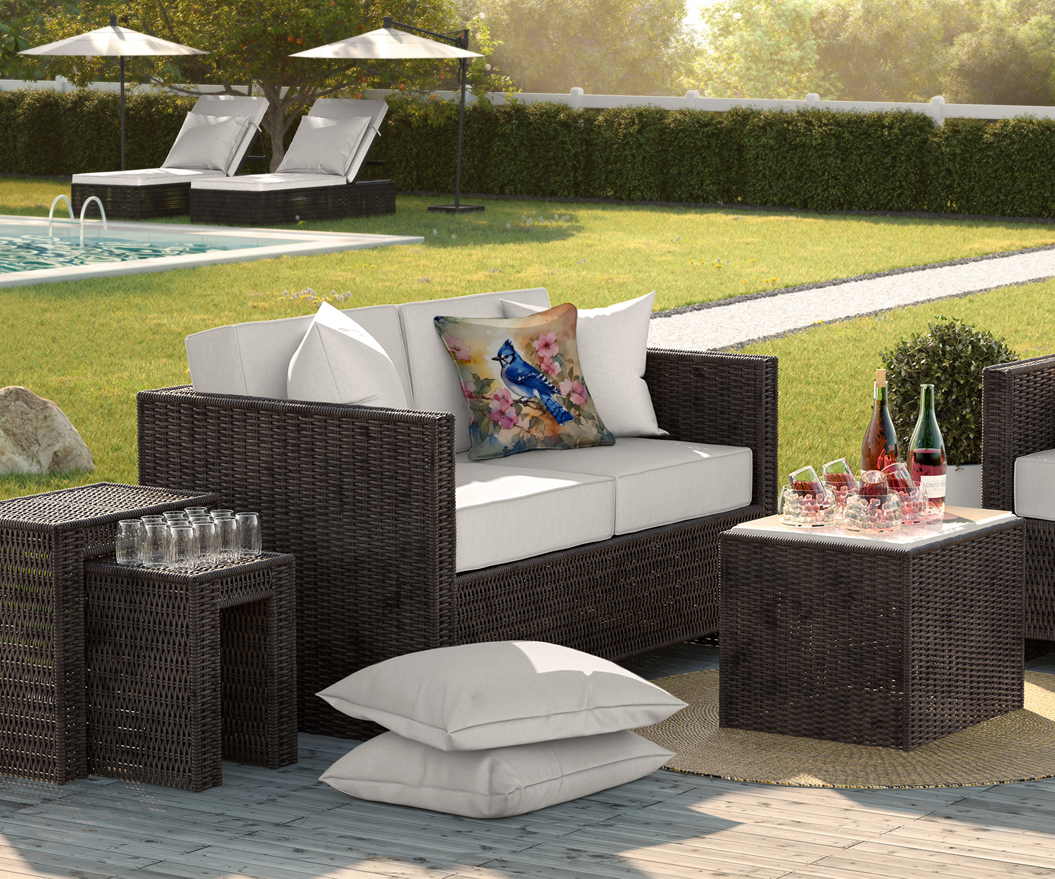 Throw Pillow featuring breed specific Blue Jay artwork. Revitalize your outdoor or indoor living space with Caroline's Treasures 18x18 Fabric Decorative Pillow. With a generously sized dimension of approximately 18 inches by 18 inches, this pillow makes a comfortable and aesthetic addition to any seating area. Made from a unique, water-resistant material developed by Caroline's Treasures, the pillow sham is 100% polyester fabric that's durable and ready to weather any condition. Its vibrant, full-color artwork will not fade over time as it is dyed with color-fast dyes. Whether you place it on your patio furniture, porch, veranda, or indoor couch, its soft canvas fabric ensures a cozy experience. The pillow is handcrafted in the United States, featuring a sham created from three pieces of fabric and a polyester insert for enduring shape and overstuffed comfort. Despite being robustly built to endure the outdoors, it is as soft and snug as your favorite indoor cushions. Please note, as all our pillows are handmade, sizes may vary slightly, adding to the charm of this unique decorative item.