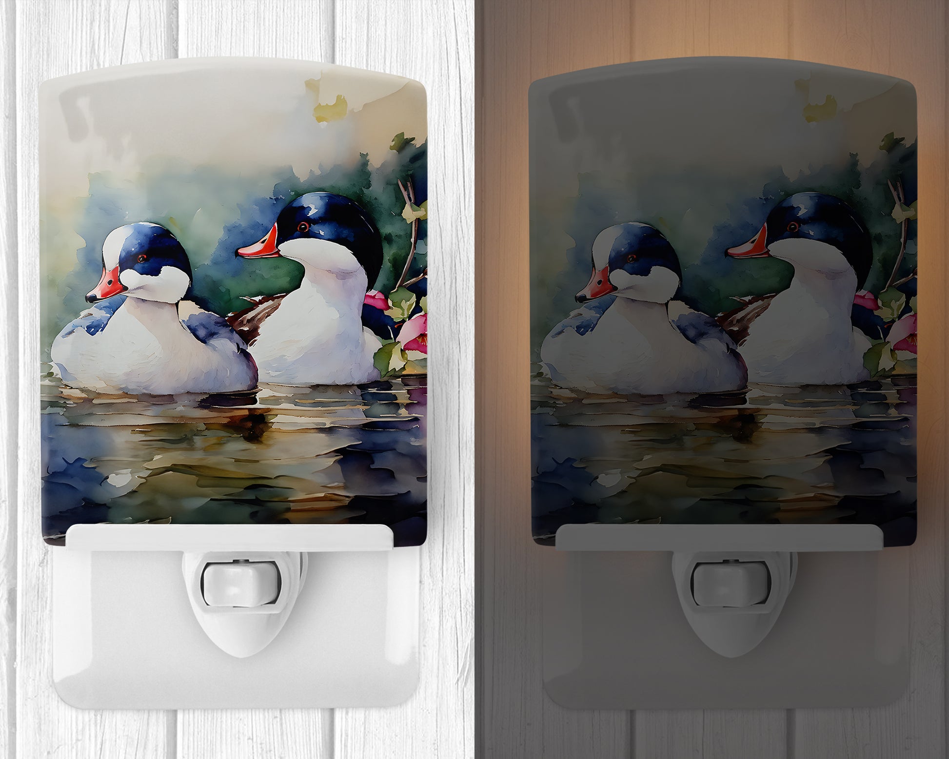 Ceramic Night Light featuring breed specific Bufflehead artwork. Introduce a splash of artistic flair and subtle illumination to your space with the Decorative Ceramic Night Light from Caroline's Treasures. Perfect for any room, this night light seamlessly blends functionality with an aesthetic appeal, offering a stylish solution to brighten up dark corners of your home or office. Boasting a six-inch high by four-inch wide ceramic tile at the front, it showcases vivid, full-color artwork from distinguished artists, transforming a simple utility into a vibrant art piece. The artwork is securely encased in a robust metal holder, ensuring durability and longevity. Two screws are provided to firmly affix the tile into the holder. The holder extends three inches deep, housing an included bulb that emits a soft, welcoming glow. This product meets all safety standards, as evidenced by its UL approval. Proudly made in the United States from imported components, this Decorative Ceramic Night Light is not just a functional device; it's a statement piece that enhances the ambiance of your surroundings.