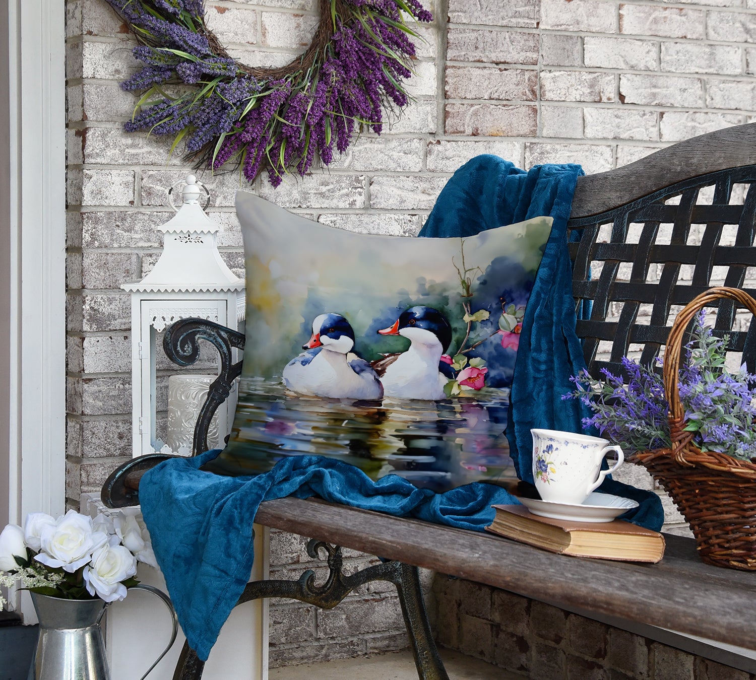 Throw Pillow featuring breed specific Bufflehead artwork. Revitalize your outdoor or indoor living space with Caroline's Treasures 18x18 Fabric Decorative Pillow. With a generously sized dimension of approximately 18 inches by 18 inches, this pillow makes a comfortable and aesthetic addition to any seating area. Made from a unique, water-resistant material developed by Caroline's Treasures, the pillow sham is 100% polyester fabric that's durable and ready to weather any condition. Its vibrant, full-color artwork will not fade over time as it is dyed with color-fast dyes. Whether you place it on your patio furniture, porch, veranda, or indoor couch, its soft canvas fabric ensures a cozy experience. The pillow is handcrafted in the United States, featuring a sham created from three pieces of fabric and a polyester insert for enduring shape and overstuffed comfort. Despite being robustly built to endure the outdoors, it is as soft and snug as your favorite indoor cushions. Please note, as all our pillows are handmade, sizes may vary slightly, adding to the charm of this unique decorative item.