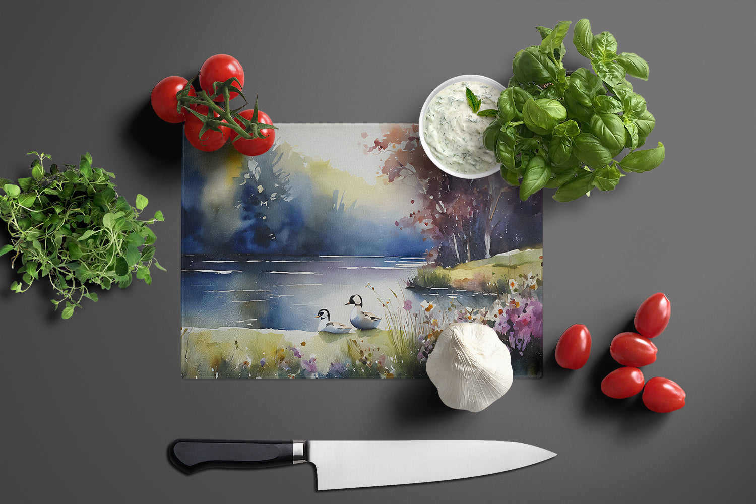 Glass Cutting Board featuring breed specific Bufflehead artwork. Introduce your kitchen to the vibrant, large Decorative Glass Cutting Board from Caroline's Treasures. Crafted from resilient tempered glass, this board is not only a utilitarian necessity but also a colorful art piece. With its generous dimensions of 15 inches in height and 12 inches in length, it offers ample space for all your cutting needs. Every piece showcases captivating artwork from distinguished artists, bringing an aesthetic edge to your kitchen. Beyond its attractive design, this cutting board ensures your countertop stays pristine and unscathed, owing to its heat-resistant properties. Engineered with user convenience in mind, it features non-skid feet for stability, and rounded corners for additional safety. Its robust construction renders it virtually unbreakable, guaranteeing longevity. The board comes with protective feet bumpers, maintaining its position during use. This product is recommended to be hand washed only. Proudly printed and assembled in the United States, this cutting board exemplifies superior craftsmanship. With Caroline's Treasures' Decorative Glass Cutting Board, you're investing in a blend of functionality and artistic flair.