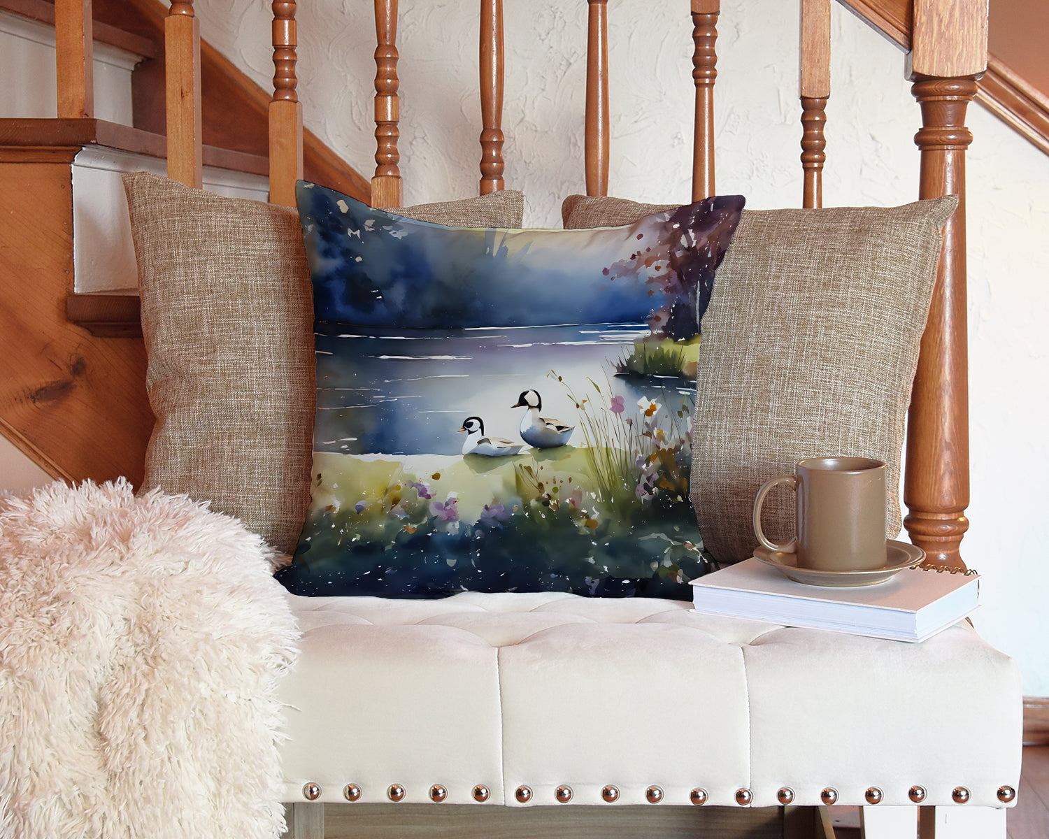 Throw Pillow featuring breed specific Bufflehead artwork. Add a touch of vibrancy and comfort to your outdoor seating with Caroline's Treasures Fabric Decorative Pillow. Measuring approximately 14 inches by 14 inches, this outdoor pillow is crafted to elevate the appeal of your patio furniture, infusing it with vivid color and artistic flair. The pillow includes a 100% Polyester Fabric sham filled with a quality pillow form to provide superior comfort. Innovatively made from our brand new material, specifically woven for its water resistance, this pillow is designed for durability. The soft canvas fabric offers versatility in use, fit for your indoor couch or your outdoor patio, porch, or veranda. The fabric is dyed with colorfast dyes built for resilience against weather conditions, ensuring the pillow retains its beauty over time. Constructed by sewing three fabric pieces to create a sham, the polyester insert is then nestled inside to form the pillow, resulting in an overstuffed pillow that maintains its shape. Both the sham and the pillow insert are proudly made in the United States. As the pillows are handcrafted, there may be minor variations in size, further enhancing their unique charm. Experience comfort in style with Caroline's Treasures Fabric Decorative Pillow.