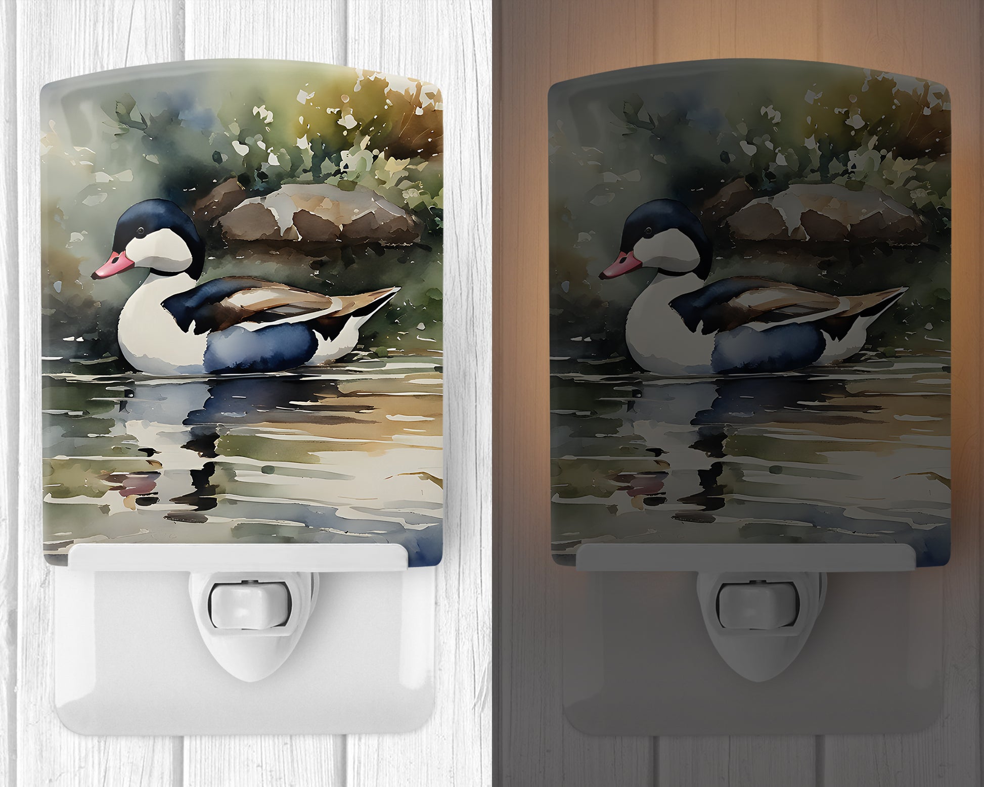 Ceramic Night Light featuring breed specific Bufflehead artwork. Introduce a splash of artistic flair and subtle illumination to your space with the Decorative Ceramic Night Light from Caroline's Treasures. Perfect for any room, this night light seamlessly blends functionality with an aesthetic appeal, offering a stylish solution to brighten up dark corners of your home or office. Boasting a six-inch high by four-inch wide ceramic tile at the front, it showcases vivid, full-color artwork from distinguished artists, transforming a simple utility into a vibrant art piece. The artwork is securely encased in a robust metal holder, ensuring durability and longevity. Two screws are provided to firmly affix the tile into the holder. The holder extends three inches deep, housing an included bulb that emits a soft, welcoming glow. This product meets all safety standards, as evidenced by its UL approval. Proudly made in the United States from imported components, this Decorative Ceramic Night Light is not just a functional device; it's a statement piece that enhances the ambiance of your surroundings.