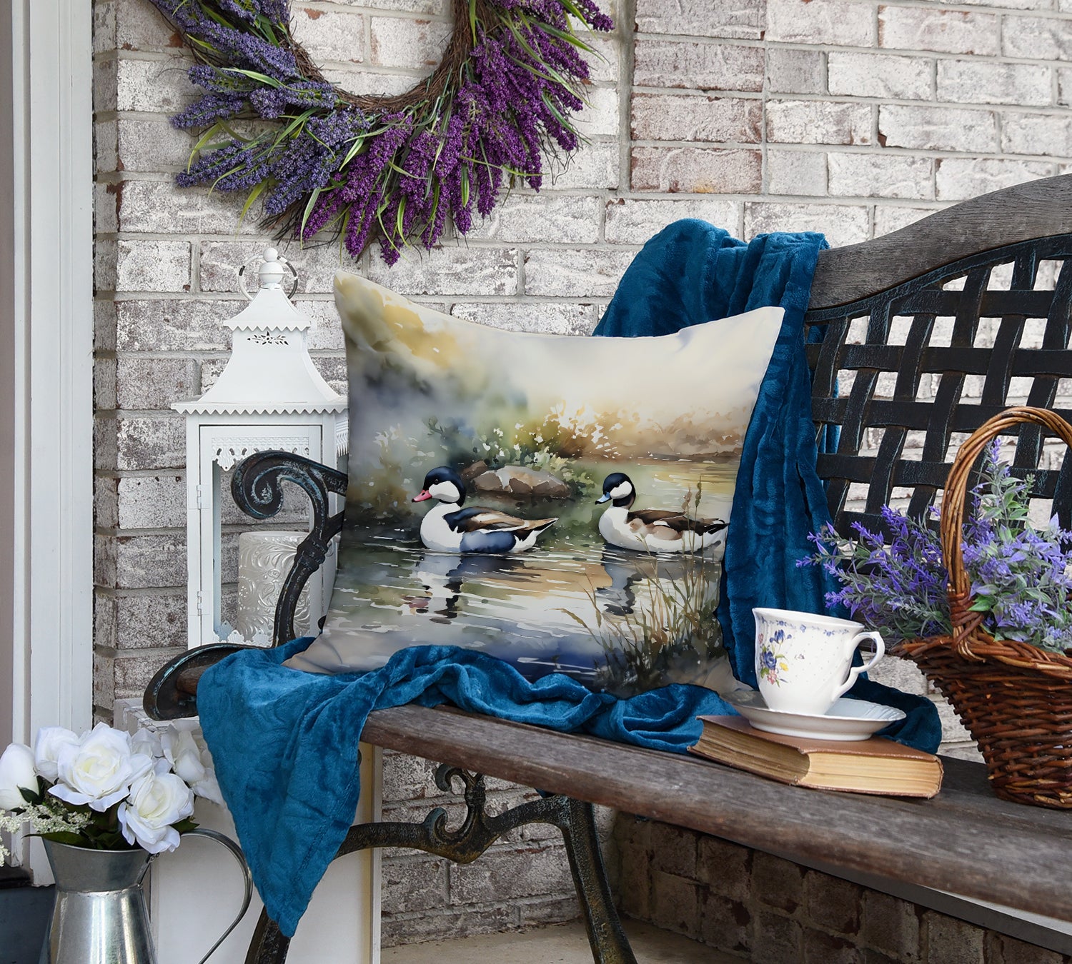 Throw Pillow featuring breed specific Bufflehead artwork. Revitalize your outdoor or indoor living space with Caroline's Treasures 18x18 Fabric Decorative Pillow. With a generously sized dimension of approximately 18 inches by 18 inches, this pillow makes a comfortable and aesthetic addition to any seating area. Made from a unique, water-resistant material developed by Caroline's Treasures, the pillow sham is 100% polyester fabric that's durable and ready to weather any condition. Its vibrant, full-color artwork will not fade over time as it is dyed with color-fast dyes. Whether you place it on your patio furniture, porch, veranda, or indoor couch, its soft canvas fabric ensures a cozy experience. The pillow is handcrafted in the United States, featuring a sham created from three pieces of fabric and a polyester insert for enduring shape and overstuffed comfort. Despite being robustly built to endure the outdoors, it is as soft and snug as your favorite indoor cushions. Please note, as all our pillows are handmade, sizes may vary slightly, adding to the charm of this unique decorative item.