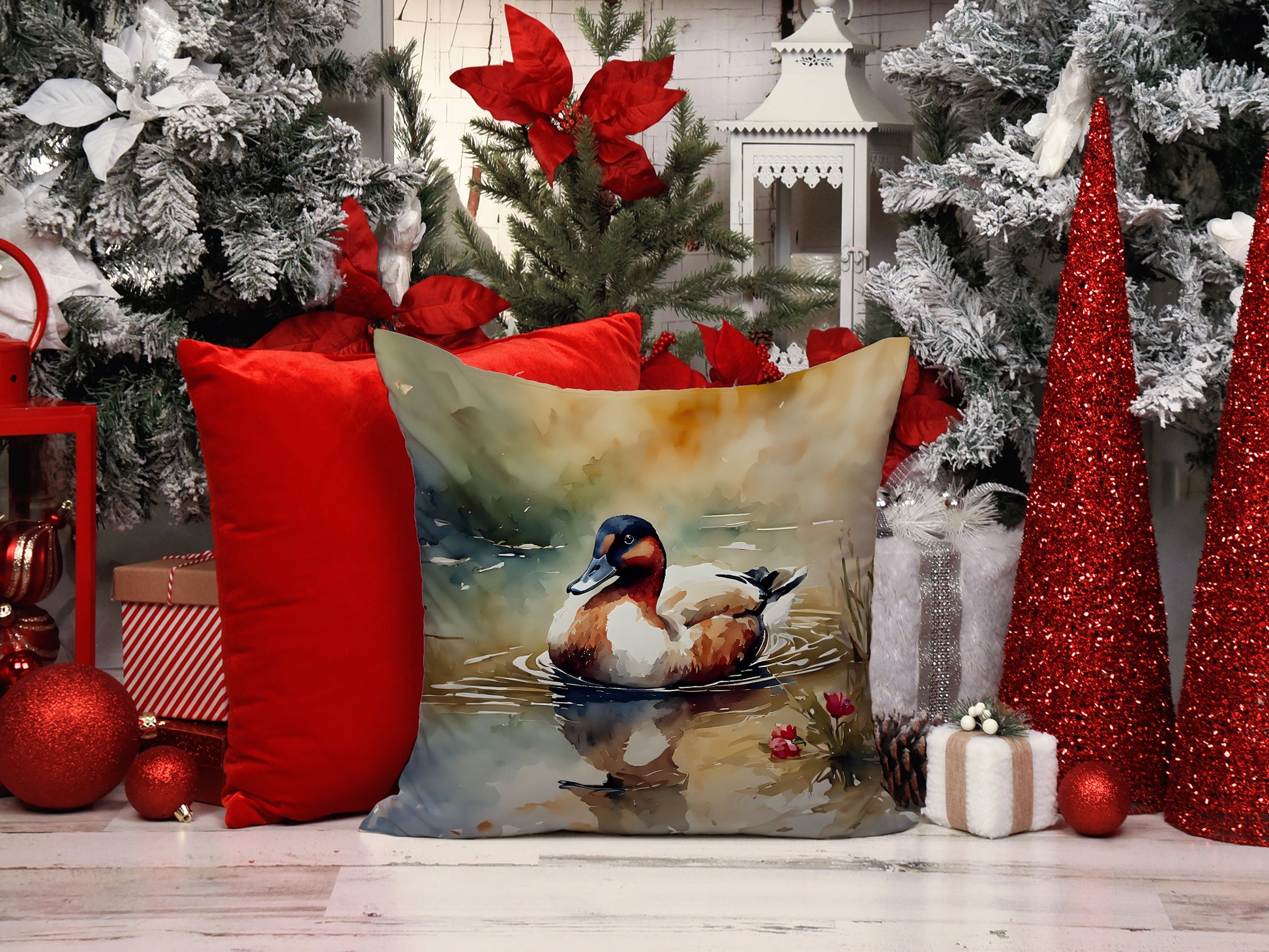 Throw Pillow featuring breed specific Canvasback artwork. Add a touch of vibrancy and comfort to your outdoor seating with Caroline's Treasures Fabric Decorative Pillow. Measuring approximately 14 inches by 14 inches, this outdoor pillow is crafted to elevate the appeal of your patio furniture, infusing it with vivid color and artistic flair. The pillow includes a 100% Polyester Fabric sham filled with a quality pillow form to provide superior comfort. Innovatively made from our brand new material, specifically woven for its water resistance, this pillow is designed for durability. The soft canvas fabric offers versatility in use, fit for your indoor couch or your outdoor patio, porch, or veranda. The fabric is dyed with colorfast dyes built for resilience against weather conditions, ensuring the pillow retains its beauty over time. Constructed by sewing three fabric pieces to create a sham, the polyester insert is then nestled inside to form the pillow, resulting in an overstuffed pillow that maintains its shape. Both the sham and the pillow insert are proudly made in the United States. As the pillows are handcrafted, there may be minor variations in size, further enhancing their unique charm. Experience comfort in style with Caroline's Treasures Fabric Decorative Pillow.