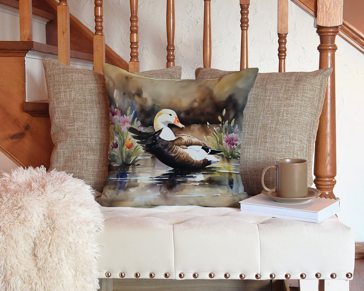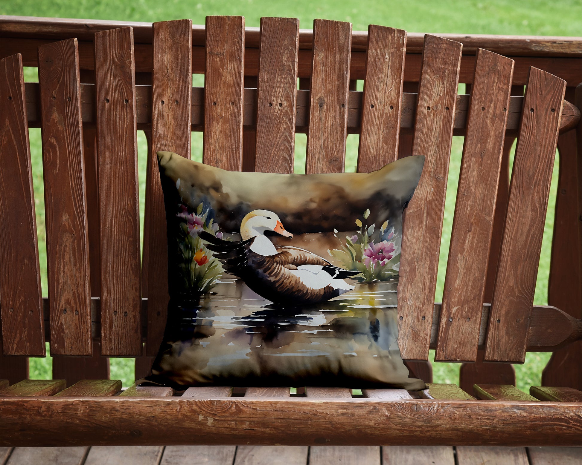 Throw Pillow featuring breed specific Common Eider Duck artwork. Add a touch of vibrancy and comfort to your outdoor seating with Caroline's Treasures Fabric Decorative Pillow. Measuring approximately 14 inches by 14 inches, this outdoor pillow is crafted to elevate the appeal of your patio furniture, infusing it with vivid color and artistic flair. The pillow includes a 100% Polyester Fabric sham filled with a quality pillow form to provide superior comfort. Innovatively made from our brand new material, specifically woven for its water resistance, this pillow is designed for durability. The soft canvas fabric offers versatility in use, fit for your indoor couch or your outdoor patio, porch, or veranda. The fabric is dyed with colorfast dyes built for resilience against weather conditions, ensuring the pillow retains its beauty over time. Constructed by sewing three fabric pieces to create a sham, the polyester insert is then nestled inside to form the pillow, resulting in an overstuffed pillow that maintains its shape. Both the sham and the pillow insert are proudly made in the United States. As the pillows are handcrafted, there may be minor variations in size, further enhancing their unique charm. Experience comfort in style with Caroline's Treasures Fabric Decorative Pillow.