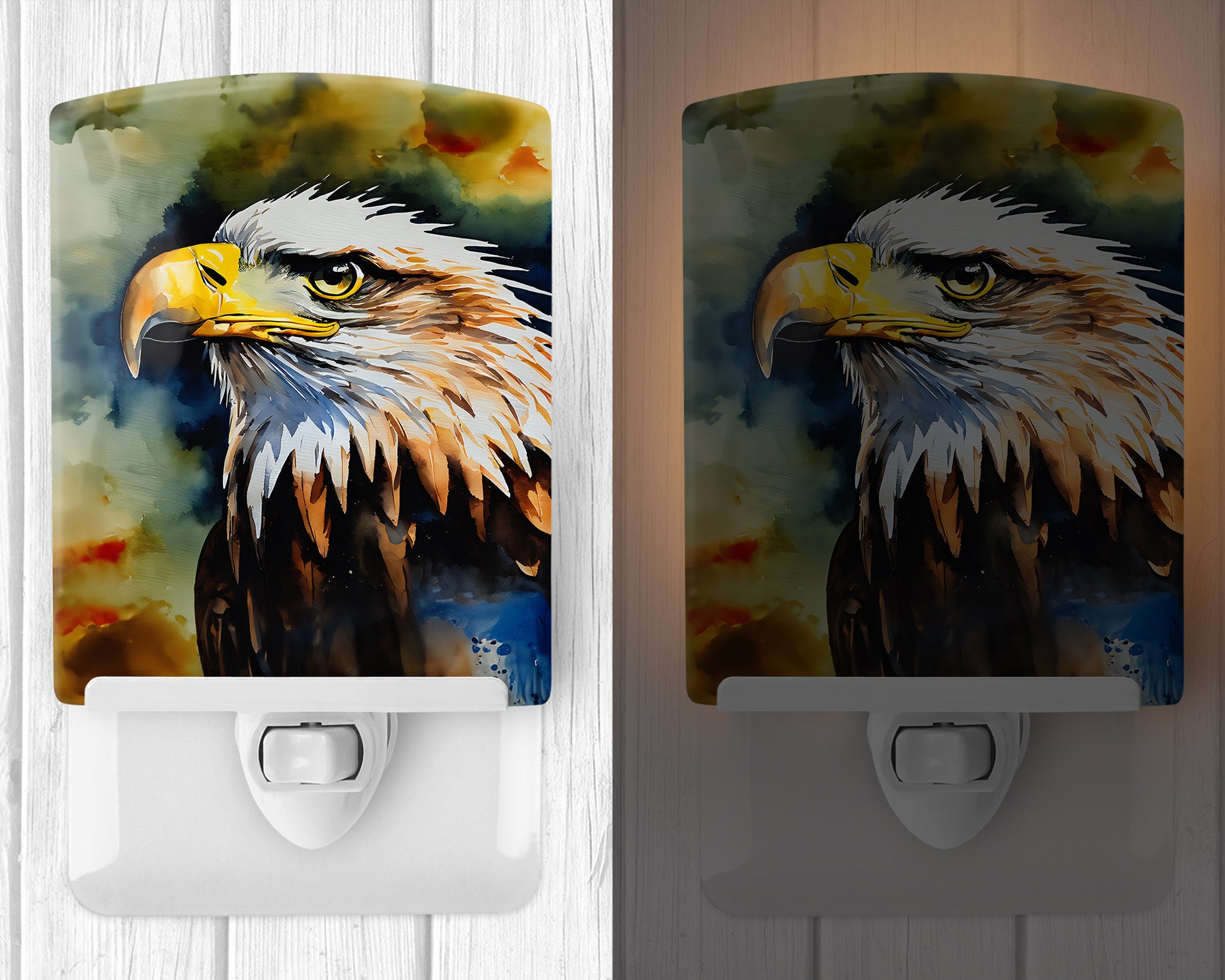 Ceramic Night Light featuring breed specific Eagle artwork. Introduce a splash of artistic flair and subtle illumination to your space with the Decorative Ceramic Night Light from Caroline's Treasures. Perfect for any room, this night light seamlessly blends functionality with an aesthetic appeal, offering a stylish solution to brighten up dark corners of your home or office. Boasting a six-inch high by four-inch wide ceramic tile at the front, it showcases vivid, full-color artwork from distinguished artists, transforming a simple utility into a vibrant art piece. The artwork is securely encased in a robust metal holder, ensuring durability and longevity. Two screws are provided to firmly affix the tile into the holder. The holder extends three inches deep, housing an included bulb that emits a soft, welcoming glow. This product meets all safety standards, as evidenced by its UL approval. Proudly made in the United States from imported components, this Decorative Ceramic Night Light is not just a functional device; it's a statement piece that enhances the ambiance of your surroundings.