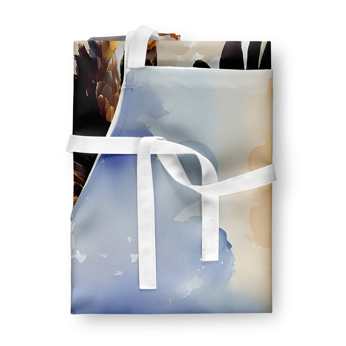 Apron featuring breed specific Eagle artwork. Elevate your cooking, baking, and grilling experiences with our versatile Kitchen or BBQ Apron. This Bib Style apron isn't just limited to culinary activities - it also serves as an excellent baking apron, artist apron, server apron, gardening apron, or even a dog grooming apron. The apron showcases vibrant full-color artwork contributed by one of our talented artists, bringing a dash of style to your daily tasks. With dimensions of approximately 27"W x 30"H, it provides ample coverage to protect your clothing from spills and splashes. Our apron is meticulously crafted from 100% Ultra Spun Polyester, known for its durability and lightweight nature. The apron comes with white tie straps, ensuring a comfortable and adjustable fit for all. It's a perfect choice for kitchen apron enthusiasts, whether you are a woman or a man. Designed for easy maintenance, this apron is fully machine washable. The quick-drying polyester material actively reduces staining, keeping your apron looking fresh and new for longer. Our beautifully designed apron isn't just a functional kitchen accessory - it's a fashion statement in the culinary world!