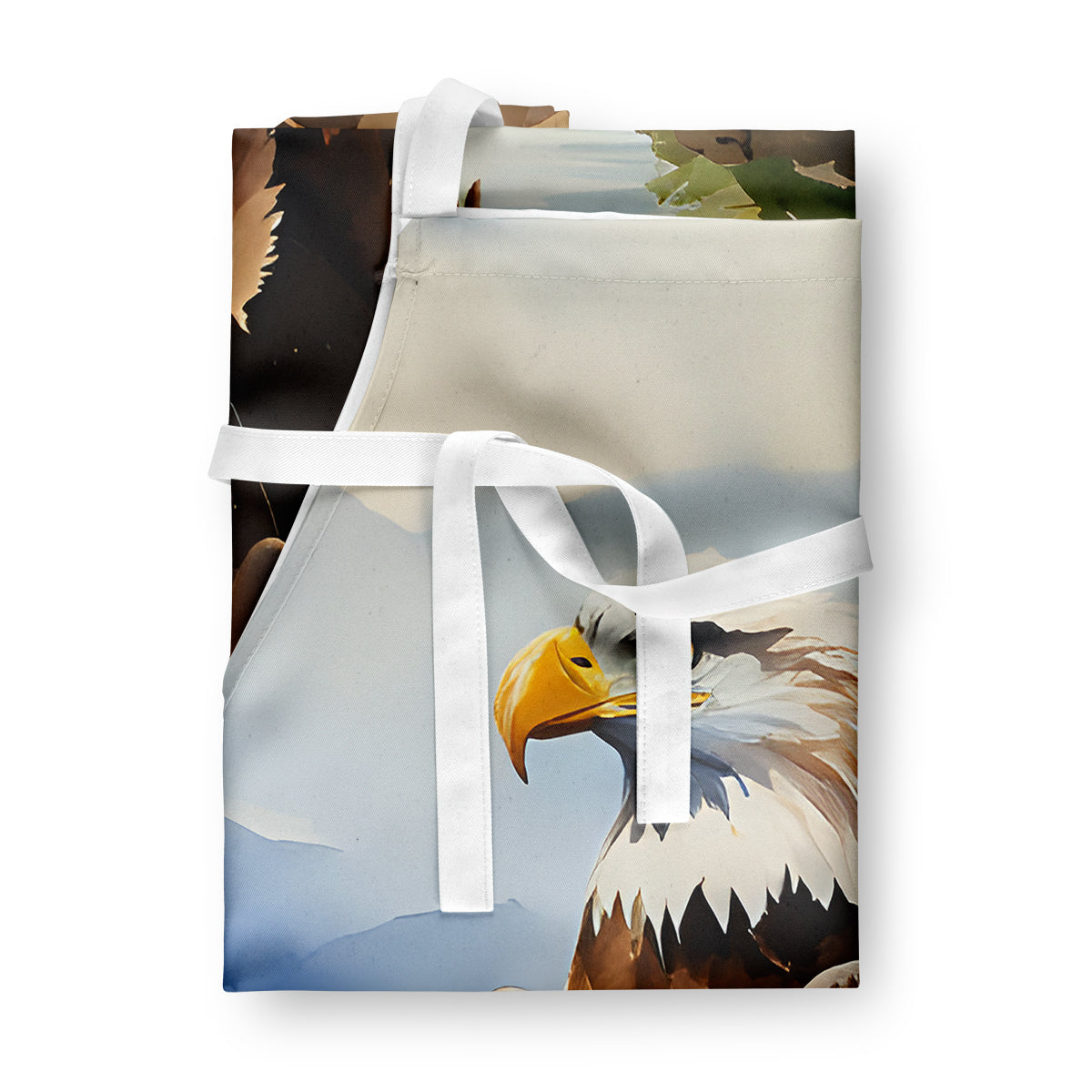 Apron featuring breed specific Eagle artwork. Elevate your cooking, baking, and grilling experiences with our versatile Kitchen or BBQ Apron. This Bib Style apron isn't just limited to culinary activities - it also serves as an excellent baking apron, artist apron, server apron, gardening apron, or even a dog grooming apron. The apron showcases vibrant full-color artwork contributed by one of our talented artists, bringing a dash of style to your daily tasks. With dimensions of approximately 27"W x 30"H, it provides ample coverage to protect your clothing from spills and splashes. Our apron is meticulously crafted from 100% Ultra Spun Polyester, known for its durability and lightweight nature. The apron comes with white tie straps, ensuring a comfortable and adjustable fit for all. It's a perfect choice for kitchen apron enthusiasts, whether you are a woman or a man. Designed for easy maintenance, this apron is fully machine washable. The quick-drying polyester material actively reduces staining, keeping your apron looking fresh and new for longer. Our beautifully designed apron isn't just a functional kitchen accessory - it's a fashion statement in the culinary world!