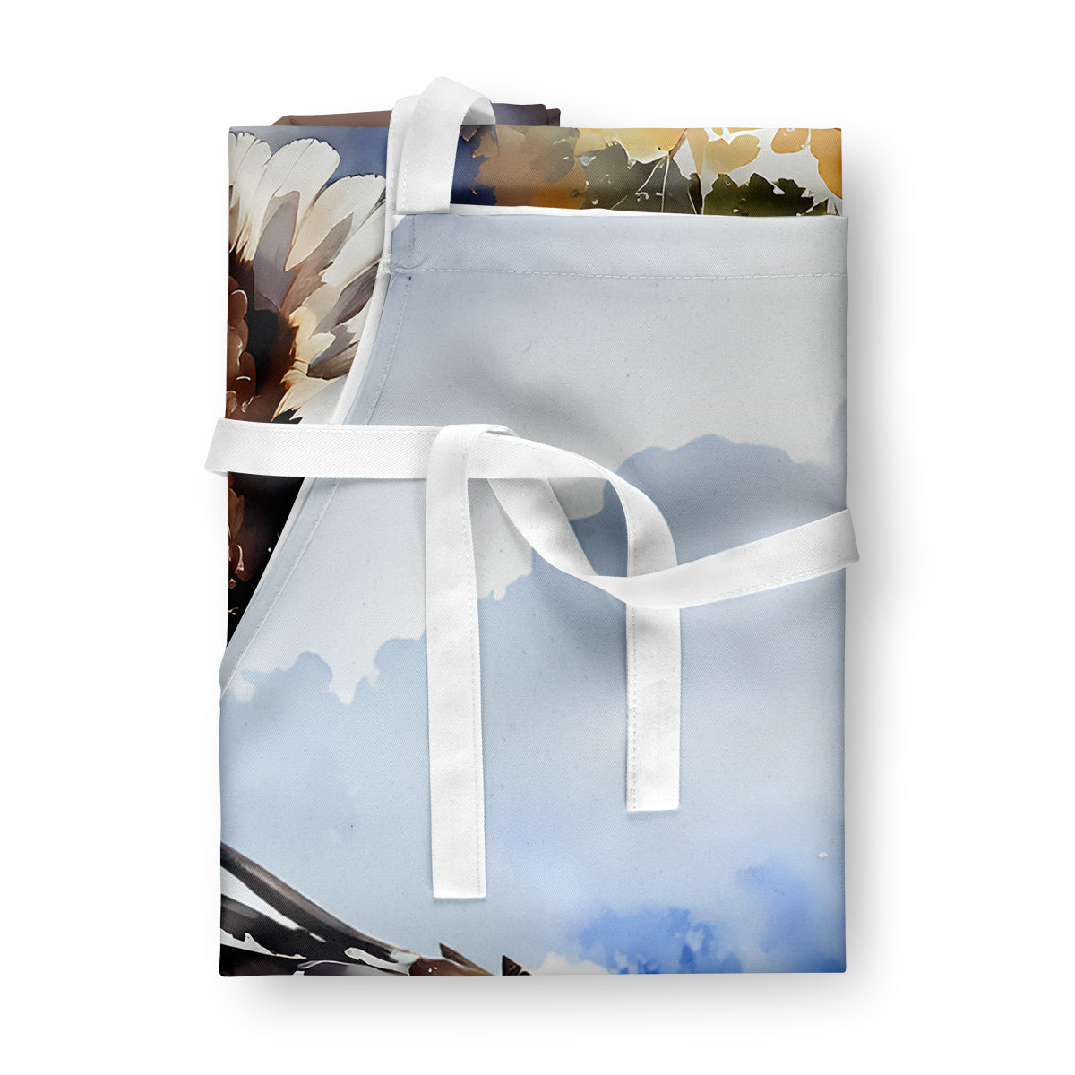 Apron featuring breed specific Eagle artwork. Elevate your cooking, baking, and grilling experiences with our versatile Kitchen or BBQ Apron. This Bib Style apron isn't just limited to culinary activities - it also serves as an excellent baking apron, artist apron, server apron, gardening apron, or even a dog grooming apron. The apron showcases vibrant full-color artwork contributed by one of our talented artists, bringing a dash of style to your daily tasks. With dimensions of approximately 27"W x 30"H, it provides ample coverage to protect your clothing from spills and splashes. Our apron is meticulously crafted from 100% Ultra Spun Polyester, known for its durability and lightweight nature. The apron comes with white tie straps, ensuring a comfortable and adjustable fit for all. It's a perfect choice for kitchen apron enthusiasts, whether you are a woman or a man. Designed for easy maintenance, this apron is fully machine washable. The quick-drying polyester material actively reduces staining, keeping your apron looking fresh and new for longer. Our beautifully designed apron isn't just a functional kitchen accessory - it's a fashion statement in the culinary world!