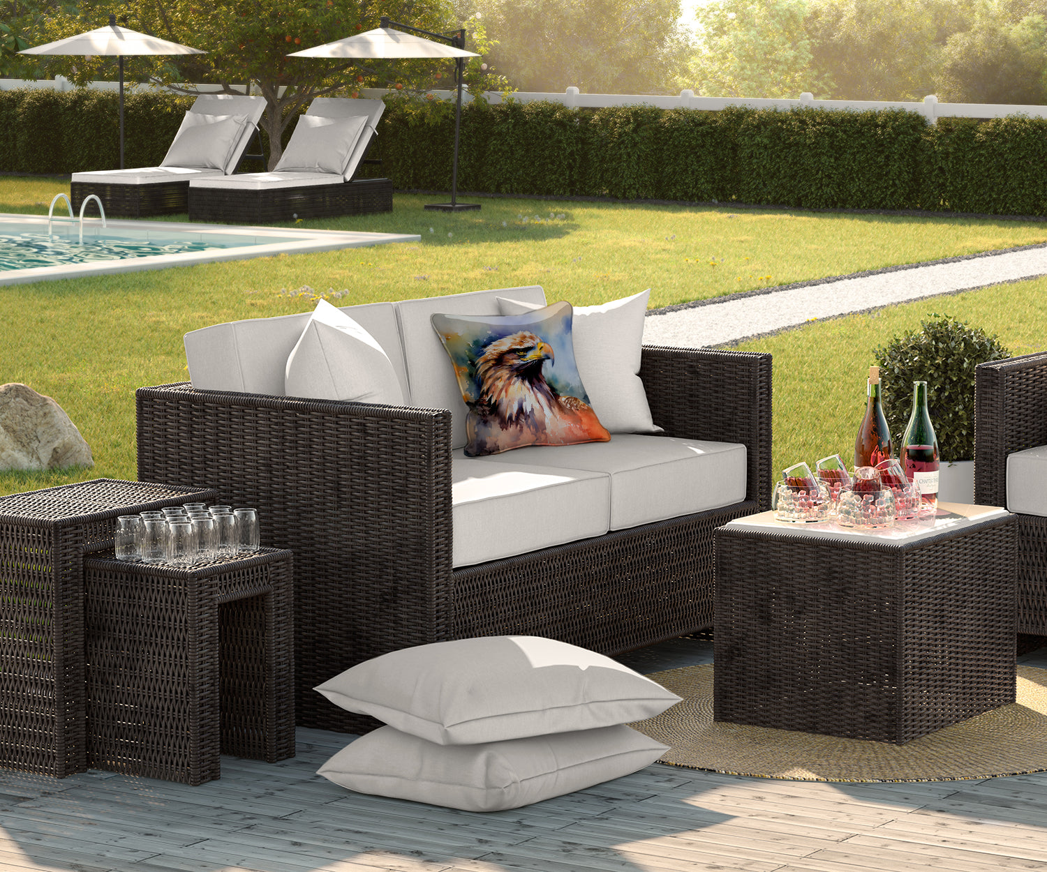 Throw Pillow featuring breed specific Eagle artwork. Revitalize your outdoor or indoor living space with Caroline's Treasures 18x18 Fabric Decorative Pillow. With a generously sized dimension of approximately 18 inches by 18 inches, this pillow makes a comfortable and aesthetic addition to any seating area. Made from a unique, water-resistant material developed by Caroline's Treasures, the pillow sham is 100% polyester fabric that's durable and ready to weather any condition. Its vibrant, full-color artwork will not fade over time as it is dyed with color-fast dyes. Whether you place it on your patio furniture, porch, veranda, or indoor couch, its soft canvas fabric ensures a cozy experience. The pillow is handcrafted in the United States, featuring a sham created from three pieces of fabric and a polyester insert for enduring shape and overstuffed comfort. Despite being robustly built to endure the outdoors, it is as soft and snug as your favorite indoor cushions. Please note, as all our pillows are handmade, sizes may vary slightly, adding to the charm of this unique decorative item.