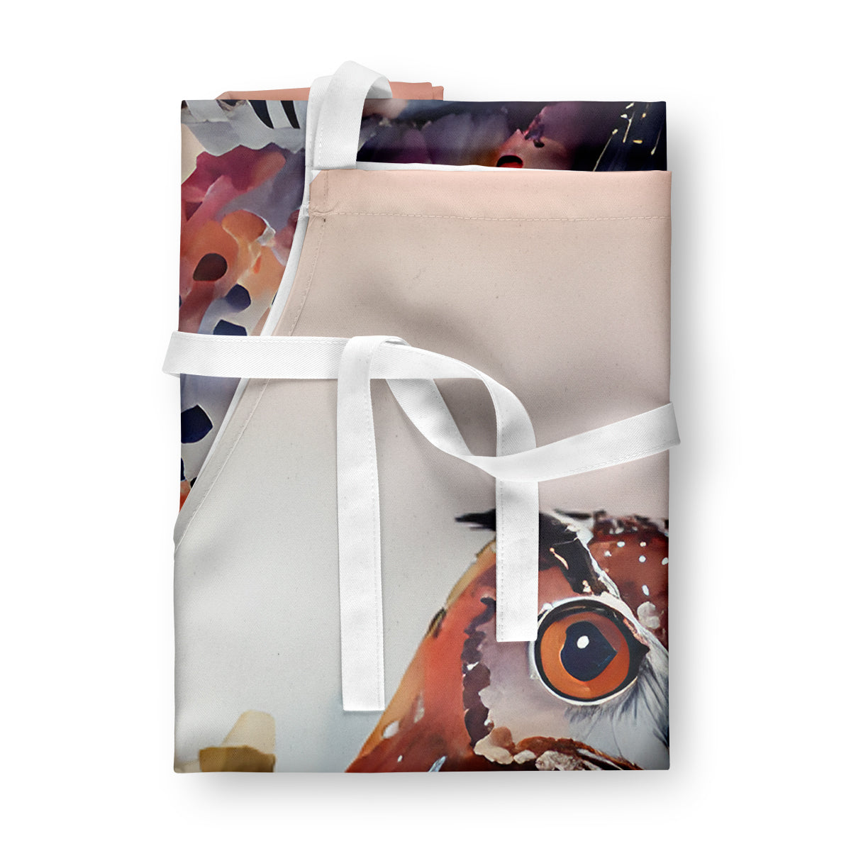 Apron featuring breed specific Elf Owl artwork. Elevate your cooking, baking, and grilling experiences with our versatile Kitchen or BBQ Apron. This Bib Style apron isn't just limited to culinary activities - it also serves as an excellent baking apron, artist apron, server apron, gardening apron, or even a dog grooming apron. The apron showcases vibrant full-color artwork contributed by one of our talented artists, bringing a dash of style to your daily tasks. With dimensions of approximately 27"W x 30"H, it provides ample coverage to protect your clothing from spills and splashes. Our apron is meticulously crafted from 100% Ultra Spun Polyester, known for its durability and lightweight nature. The apron comes with white tie straps, ensuring a comfortable and adjustable fit for all. It's a perfect choice for kitchen apron enthusiasts, whether you are a woman or a man. Designed for easy maintenance, this apron is fully machine washable. The quick-drying polyester material actively reduces staining, keeping your apron looking fresh and new for longer. Our beautifully designed apron isn't just a functional kitchen accessory - it's a fashion statement in the culinary world!