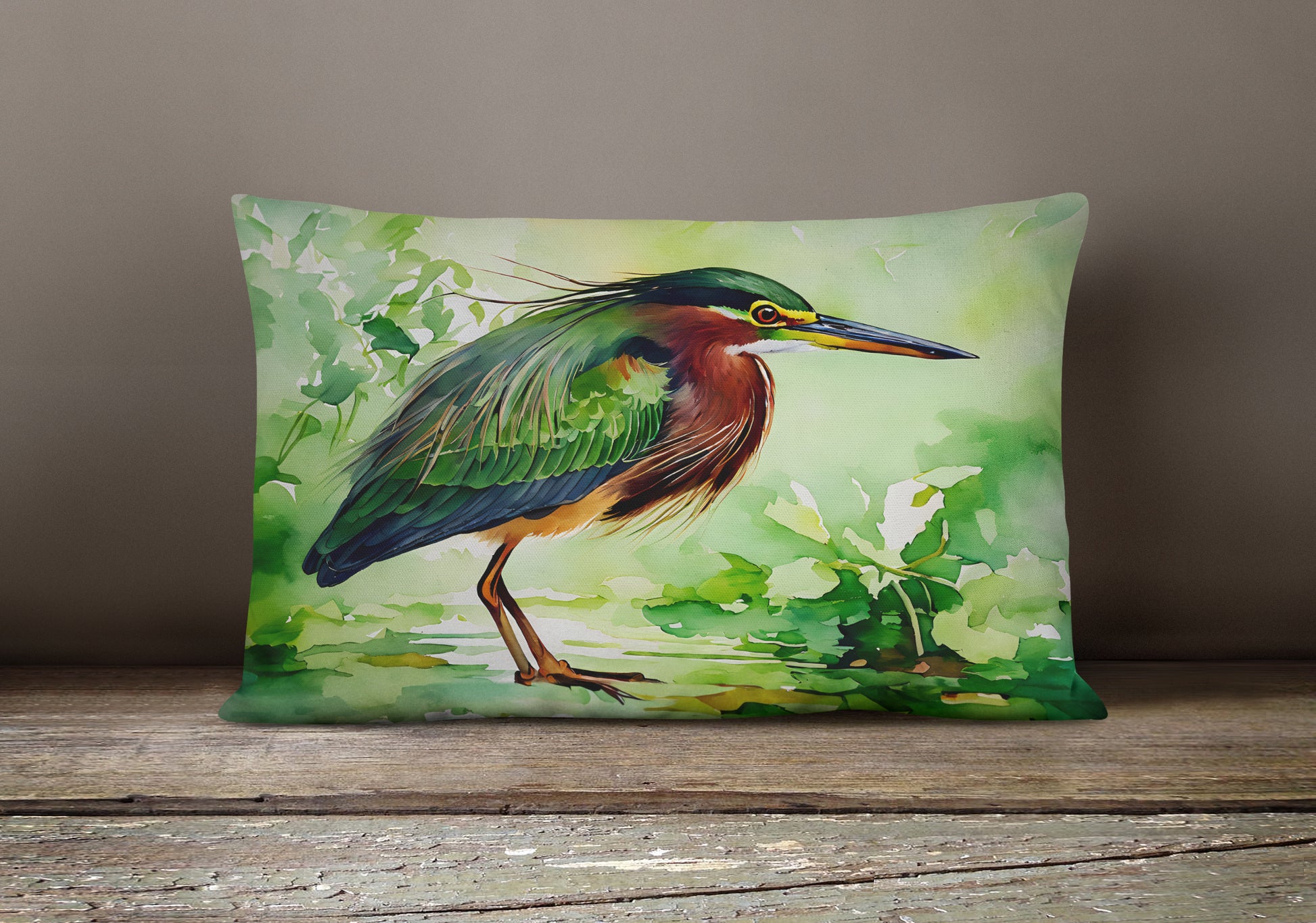 Throw Pillow featuring breed specific Green Heron artwork. Embrace the fusion of comfort and style with Caroline's Treasures Fabric Decorative Pillow. This 12x16 inch outdoor pillow is designed to complement your patio furniture, adding a splash of color and artistry to your outdoor setting. Constructed with a 100% Polyester Fabric pillow sham filled with a plush pillow form, this cushion is as comfortable as it is durable. Our outdoor pillow utilizes a novel fabric, meticulously woven for enhanced water resistance. This soft canvas material is equally suited for your indoor couch as well as outdoor settings such as the patio, porch, or veranda. To ensure enduring vibrance, we employ colorfast dyes resistant to fading even when subjected to weather elements. The making of this pillow involves the delicate sewing together of three fabric pieces to create a sham, into which a polyester insert is carefully placed. The result is an overstuffed pillow that tenaciously holds its shape. With both the sham and the pillow insert crafted in the United States, these handmade pillows are a testament to superior local craftsmanship. Note that as these pillows are handmade, sizes may slightly vary, enhancing their unique appeal. Enjoy comfort in style with Caroline's Treasures Fabric Decorative Pillow.