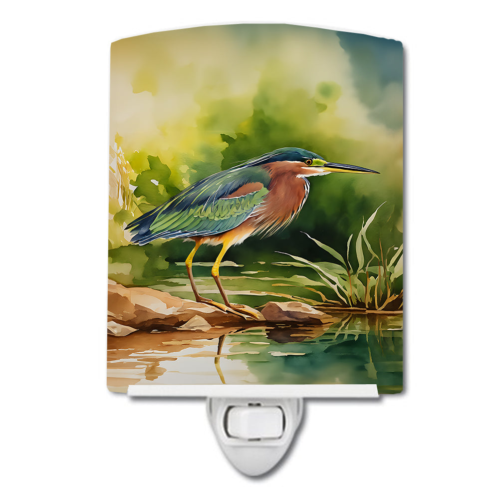 Ceramic Night Light featuring breed specific Green Heron artwork. Introduce a splash of artistic flair and subtle illumination to your space with the Decorative Ceramic Night Light from Caroline's Treasures. Perfect for any room, this night light seamlessly blends functionality with an aesthetic appeal, offering a stylish solution to brighten up dark corners of your home or office. Boasting a six-inch high by four-inch wide ceramic tile at the front, it showcases vivid, full-color artwork from distinguished artists, transforming a simple utility into a vibrant art piece. The artwork is securely encased in a robust metal holder, ensuring durability and longevity. Two screws are provided to firmly affix the tile into the holder. The holder extends three inches deep, housing an included bulb that emits a soft, welcoming glow. This product meets all safety standards, as evidenced by its UL approval. Proudly made in the United States from imported components, this Decorative Ceramic Night Light is not just a functional device; it's a statement piece that enhances the ambiance of your surroundings.