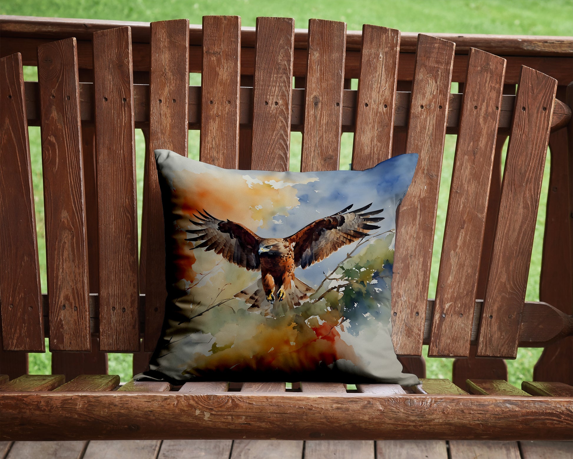 Throw Pillow featuring breed specific Hawk artwork. Add a touch of vibrancy and comfort to your outdoor seating with Caroline's Treasures Fabric Decorative Pillow. Measuring approximately 14 inches by 14 inches, this outdoor pillow is crafted to elevate the appeal of your patio furniture, infusing it with vivid color and artistic flair. The pillow includes a 100% Polyester Fabric sham filled with a quality pillow form to provide superior comfort. Innovatively made from our brand new material, specifically woven for its water resistance, this pillow is designed for durability. The soft canvas fabric offers versatility in use, fit for your indoor couch or your outdoor patio, porch, or veranda. The fabric is dyed with colorfast dyes built for resilience against weather conditions, ensuring the pillow retains its beauty over time. Constructed by sewing three fabric pieces to create a sham, the polyester insert is then nestled inside to form the pillow, resulting in an overstuffed pillow that maintains its shape. Both the sham and the pillow insert are proudly made in the United States. As the pillows are handcrafted, there may be minor variations in size, further enhancing their unique charm. Experience comfort in style with Caroline's Treasures Fabric Decorative Pillow.