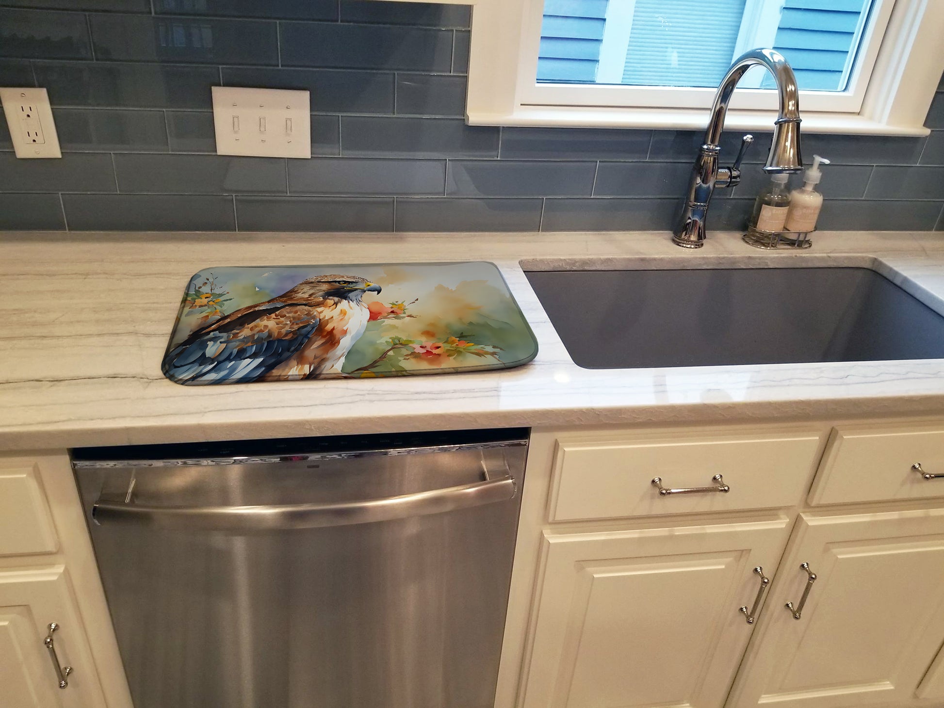 Dish Drying Mat featuring breed specific Hawk artwork. Say goodbye to messy countertops and soggy dish towels with our innovative dish drying mat. Our high-quality dish drying pad is designed to keep your countertops dry while offering a stylish and efficient solution. Whether you're air drying dishes, glasses, stemware, silverware, pots, pans, bottles, or even fruits and vegetables, our dish mat is the perfect choice. The 14 inches x 22 inches size fits most counters and dish drying racks, and the non-slip design ensures stability. Made with water-absorbent polyester and a polyurethane foam insert, our dish drying mat is not only functional but also durable. It's machine washable and printed in the USA for long-lasting use. The beautiful artwork adds flair to your kitchen decor, making it a perfect housewarming gift or present for any occasion. Upgrade your kitchen experience with our absorbent and versatile dish drying mat.