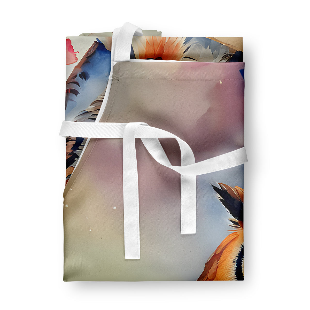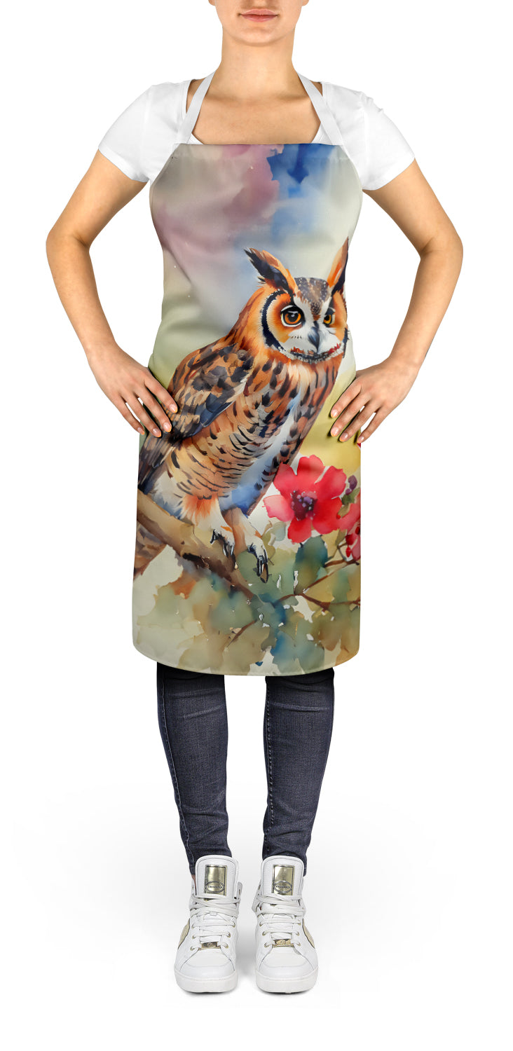 Apron featuring breed specific Long-Eared Owl artwork. Elevate your cooking, baking, and grilling experiences with our versatile Kitchen or BBQ Apron. This Bib Style apron isn't just limited to culinary activities - it also serves as an excellent baking apron, artist apron, server apron, gardening apron, or even a dog grooming apron. The apron showcases vibrant full-color artwork contributed by one of our talented artists, bringing a dash of style to your daily tasks. With dimensions of approximately 27"W x 30"H, it provides ample coverage to protect your clothing from spills and splashes. Our apron is meticulously crafted from 100% Ultra Spun Polyester, known for its durability and lightweight nature. The apron comes with white tie straps, ensuring a comfortable and adjustable fit for all. It's a perfect choice for kitchen apron enthusiasts, whether you are a woman or a man. Designed for easy maintenance, this apron is fully machine washable. The quick-drying polyester material actively reduces staining, keeping your apron looking fresh and new for longer. Our beautifully designed apron isn't just a functional kitchen accessory - it's a fashion statement in the culinary world!