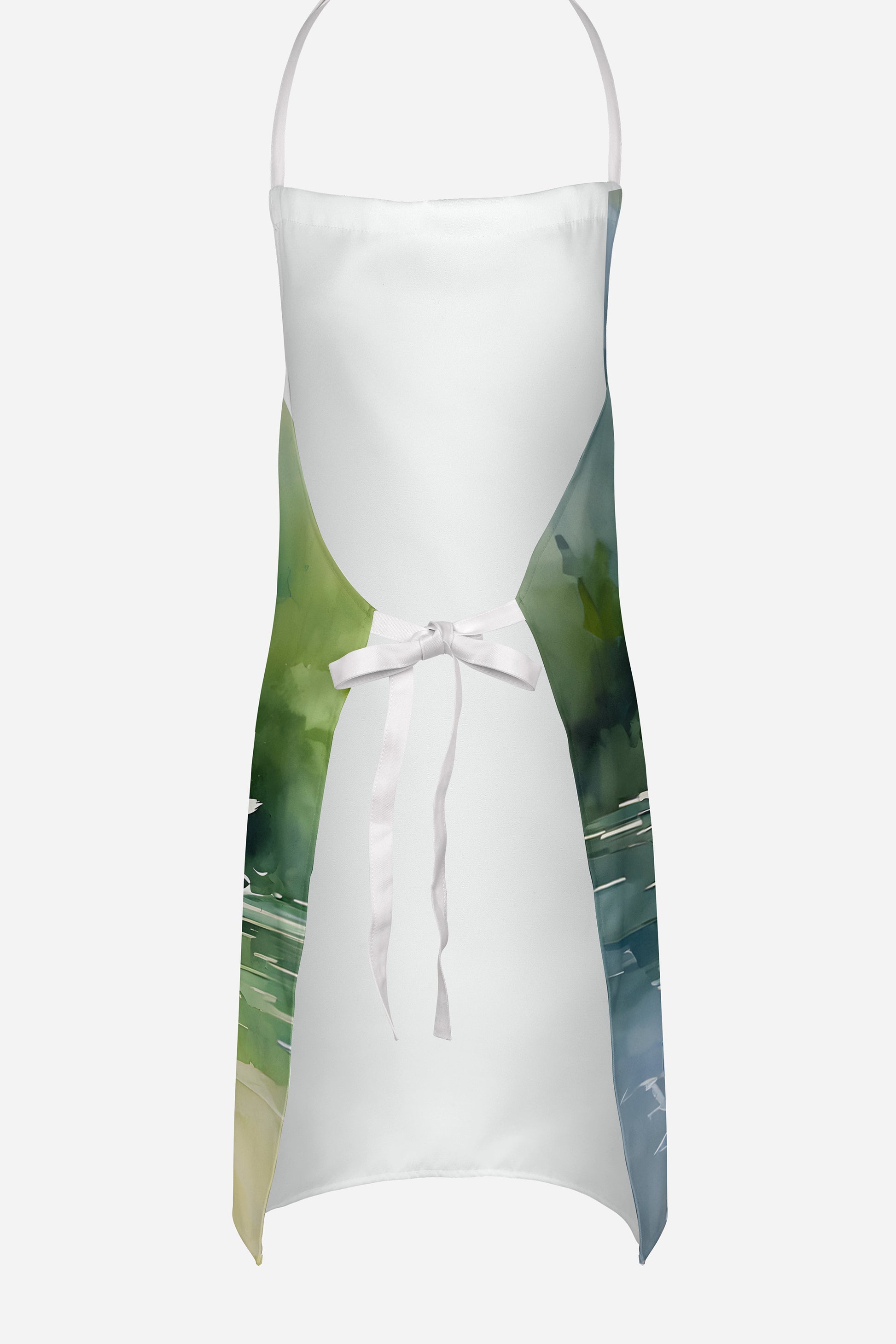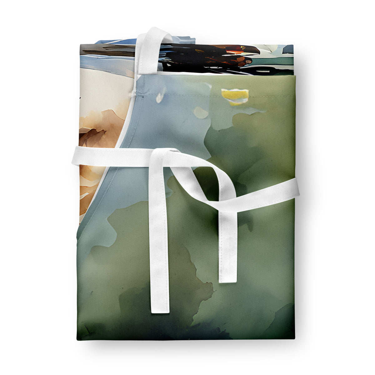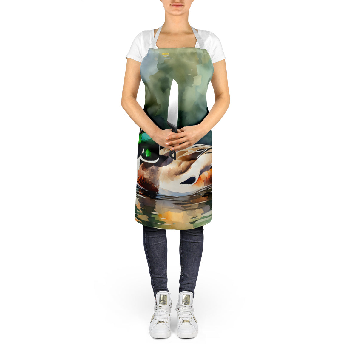 Apron featuring breed specific Mallard artwork. Elevate your cooking, baking, and grilling experiences with our versatile Kitchen or BBQ Apron. This Bib Style apron isn't just limited to culinary activities - it also serves as an excellent baking apron, artist apron, server apron, gardening apron, or even a dog grooming apron. The apron showcases vibrant full-color artwork contributed by one of our talented artists, bringing a dash of style to your daily tasks. With dimensions of approximately 27"W x 30"H, it provides ample coverage to protect your clothing from spills and splashes. Our apron is meticulously crafted from 100% Ultra Spun Polyester, known for its durability and lightweight nature. The apron comes with white tie straps, ensuring a comfortable and adjustable fit for all. It's a perfect choice for kitchen apron enthusiasts, whether you are a woman or a man. Designed for easy maintenance, this apron is fully machine washable. The quick-drying polyester material actively reduces staining, keeping your apron looking fresh and new for longer. Our beautifully designed apron isn't just a functional kitchen accessory - it's a fashion statement in the culinary world!