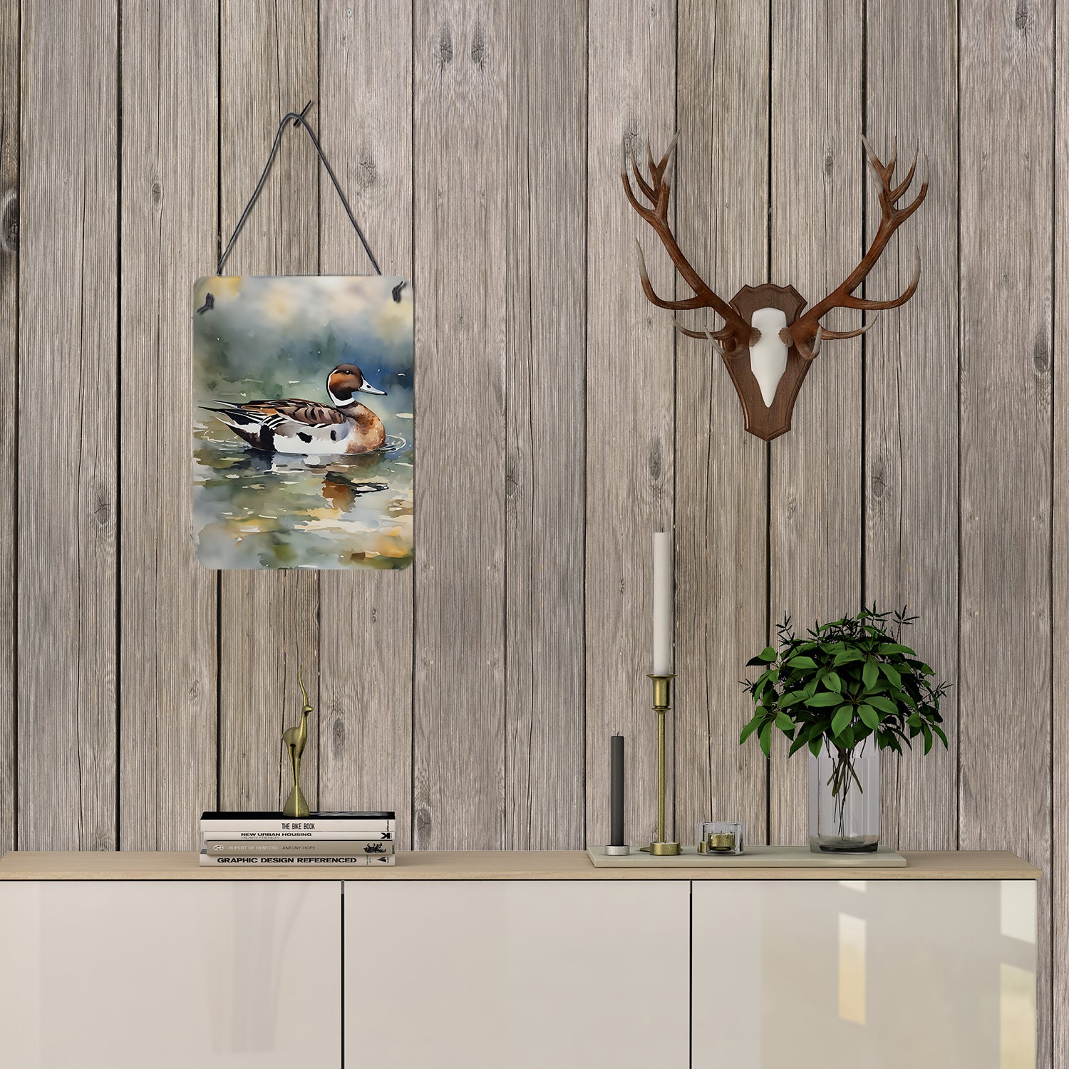 Wall or Door Hanging Prints featuring breed specific Northern Pintail artwork. Spruce up your space with our Indoor or Outdoor Aluminum Artwork Prints. Designed to brighten your kitchen, bathroom, office, or outdoor areas like patios and porches, these prints offer a unique way to decorate your home or workspace. Measuring 12 by 16 inches, the prints are vibrant, full color, and bring an element of artistry to any setting. What makes these prints special is their durability and resistance to the elements. If placed outside, they can withstand direct sunlight for a considerable time before showing signs of fading. Crafted from rust and fade-resistant aluminum, these prints are built to last and maintain their vibrant colors. Each print comes with a black hanging rope and rounded corners for safety. The back of the print showcases a brushed silver color, adding a touch of sophistication. The lightweight design allows easy hanging with virtually any nail or screw, making installation a breeze. Whether indoors or outdoors, these prints add a distinctive touch to any space.