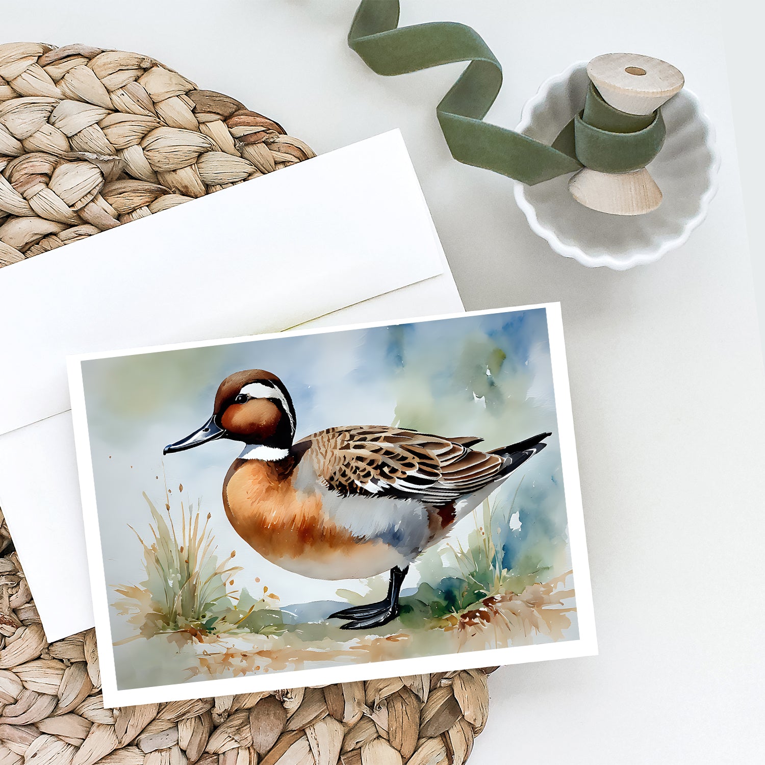 Greeting Cards Pack of 8 featuring breed specific Northern Pintail artwork. Celebrate special moments with Caroline's Treasures Printed Greeting Card Pack. This pack includes eight beautifully folded 5x7 cards, accompanied by eight matching white envelopes. With blank interiors, these cards provide ample space for your personalized messages and heartfelt holiday greetings. Each card features captivating full-color artwork, meticulously printed in our facility on high-quality 80 lb cover stock or 216 GSM. The super smooth finish of the white cards enhances the visual impact of the artwork, creating a truly stunning presentation. Designed by our talented in-house artists or licensed artists, the artwork on these cards showcases their creativity and attention to detail. From vibrant illustrations to captivating designs, each card tells its own unique story. Whether it's for birthdays, anniversaries, holidays, or any special occasion, Caroline's Treasures Greeting Card Pack is the perfect way to convey your heartfelt sentiments. Share joy, love, and warm wishes with these exquisite cards and make every moment unforgettable.