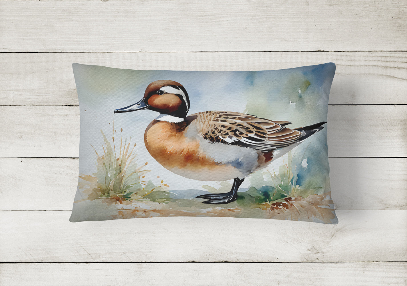 Throw Pillow featuring breed specific Northern Pintail artwork. Embrace the fusion of comfort and style with Caroline's Treasures Fabric Decorative Pillow. This 12x16 inch outdoor pillow is designed to complement your patio furniture, adding a splash of color and artistry to your outdoor setting. Constructed with a 100% Polyester Fabric pillow sham filled with a plush pillow form, this cushion is as comfortable as it is durable. Our outdoor pillow utilizes a novel fabric, meticulously woven for enhanced water resistance. This soft canvas material is equally suited for your indoor couch as well as outdoor settings such as the patio, porch, or veranda. To ensure enduring vibrance, we employ colorfast dyes resistant to fading even when subjected to weather elements. The making of this pillow involves the delicate sewing together of three fabric pieces to create a sham, into which a polyester insert is carefully placed. The result is an overstuffed pillow that tenaciously holds its shape. With both the sham and the pillow insert crafted in the United States, these handmade pillows are a testament to superior local craftsmanship. Note that as these pillows are handmade, sizes may slightly vary, enhancing their unique appeal. Enjoy comfort in style with Caroline's Treasures Fabric Decorative Pillow.