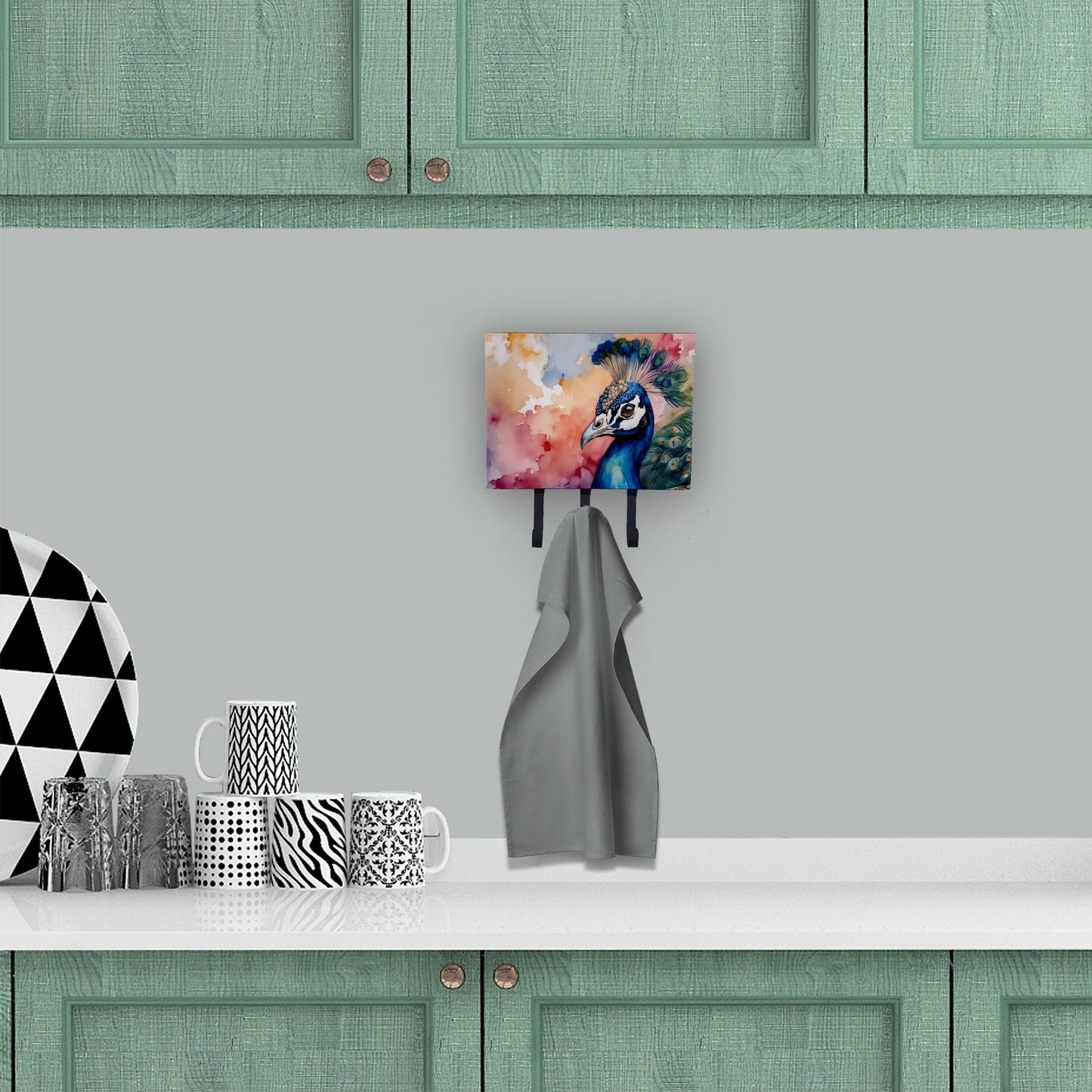 Leash or Key Holder featuring breed specific Peacock artwork. Transform your home or office's organization with the Caroline's Treasures Triple Leash or Key Holder. Offering versatility and style, this triple hook holder is perfect for holding keys, leashes, or just about any other small items you need to keep at hand. Crafted with a hardboard tile mounted to a metal rectangle, this holder's structure speaks of durability and reliability. Each hook hangs down about 2.5 inches from the base, providing ample space for hanging your essentials. Despite its robustness, this triple hook holder remains simple to install. It comes with a 1.5-inch long hanger attached to the metal plate, ensuring easy installation with a screw or paneling nail. This holder, measuring 6 x 2 x 9 inches and weighing only 1 lb, is a compact and lightweight solution to your storage needs. Ideal for home or office use, the Caroline's Treasures Triple Leash or Key Holder enhances organization while adding a touch of sophistication to your space.