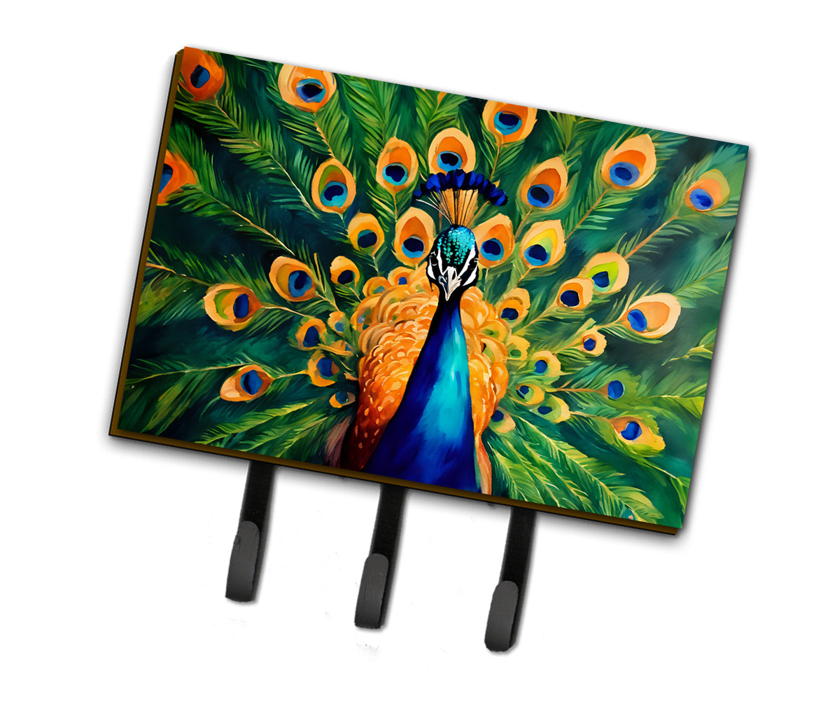 Leash or Key Holder featuring breed specific Peacock artwork. Transform your home or office's organization with the Caroline's Treasures Triple Leash or Key Holder. Offering versatility and style, this triple hook holder is perfect for holding keys, leashes, or just about any other small items you need to keep at hand. Crafted with a hardboard tile mounted to a metal rectangle, this holder's structure speaks of durability and reliability. Each hook hangs down about 2.5 inches from the base, providing ample space for hanging your essentials. Despite its robustness, this triple hook holder remains simple to install. It comes with a 1.5-inch long hanger attached to the metal plate, ensuring easy installation with a screw or paneling nail. This holder, measuring 6 x 2 x 9 inches and weighing only 1 lb, is a compact and lightweight solution to your storage needs. Ideal for home or office use, the Caroline's Treasures Triple Leash or Key Holder enhances organization while adding a touch of sophistication to your space.