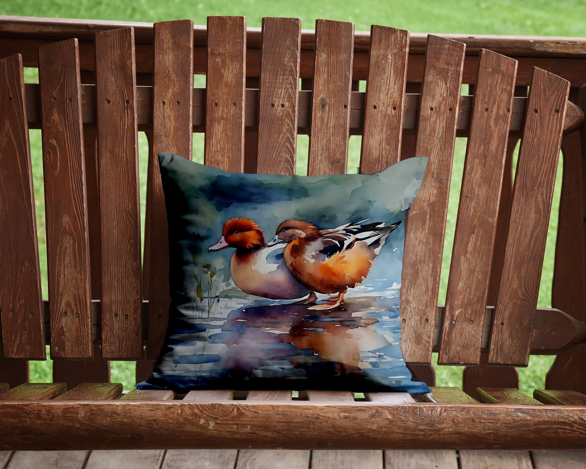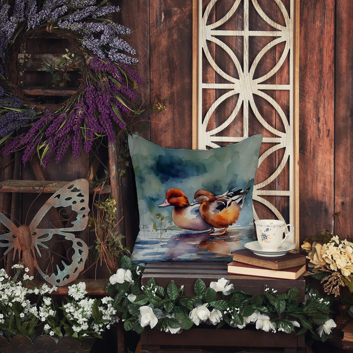 Throw Pillow featuring breed specific Redhead Duck artwork. Add a touch of vibrancy and comfort to your outdoor seating with Caroline's Treasures Fabric Decorative Pillow. Measuring approximately 14 inches by 14 inches, this outdoor pillow is crafted to elevate the appeal of your patio furniture, infusing it with vivid color and artistic flair. The pillow includes a 100% Polyester Fabric sham filled with a quality pillow form to provide superior comfort. Innovatively made from our brand new material, specifically woven for its water resistance, this pillow is designed for durability. The soft canvas fabric offers versatility in use, fit for your indoor couch or your outdoor patio, porch, or veranda. The fabric is dyed with colorfast dyes built for resilience against weather conditions, ensuring the pillow retains its beauty over time. Constructed by sewing three fabric pieces to create a sham, the polyester insert is then nestled inside to form the pillow, resulting in an overstuffed pillow that maintains its shape. Both the sham and the pillow insert are proudly made in the United States. As the pillows are handcrafted, there may be minor variations in size, further enhancing their unique charm. Experience comfort in style with Caroline's Treasures Fabric Decorative Pillow.