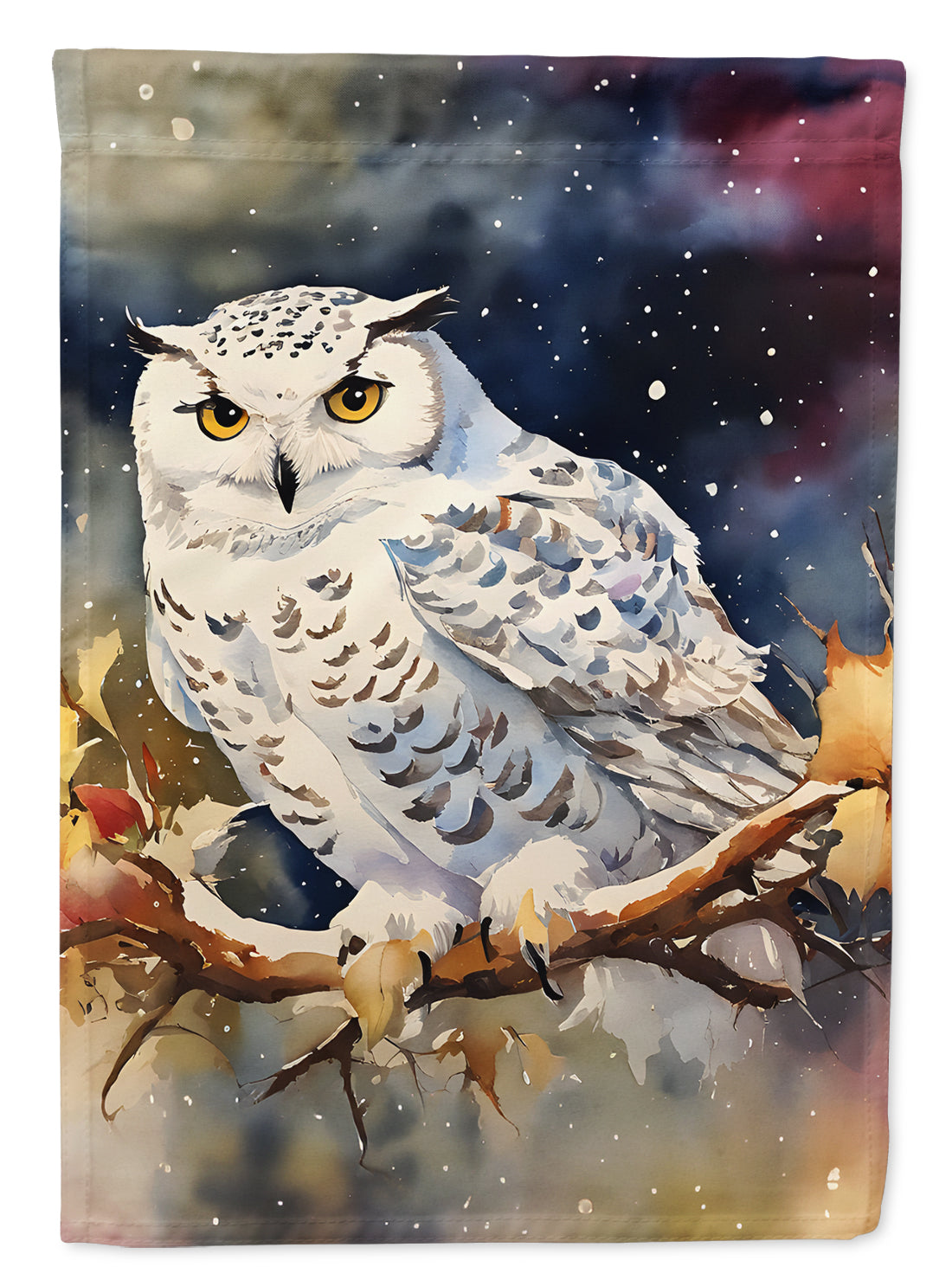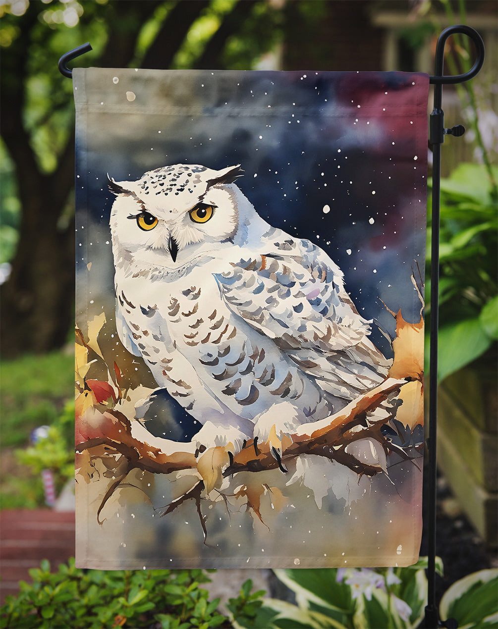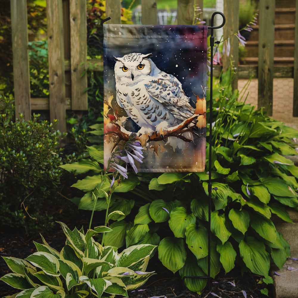 Garden Flag featuring breed specific Snowy Owl artwork. Enhance the beauty of your garden, patio, or yard with Caroline's Treasures Decorative Garden Flag, proudly made in the USA. Crafted from two pieces of thick, double-sided polyester fabric, this 2-ply garden flag is designed to withstand various weather conditions, making it water-resistant and weatherproof. Featuring correctly readable words on both sides, this garden flag offers a delightful visual experience from any angle. With its heavier weight, it stands out among other garden flags, ensuring stability and durability even in wind, rain, and snow. Measuring approximately 11 1/4 inches by 15 1/2 inches, this flag allows you to personalize your outdoor decor. It comes with a 1 1/2-inch sleeve sewn in, allowing easy attachment to any standard garden flag stand or garden size porch hanger (sold separately). Make a statement in your outdoor space with Caroline's Treasures Decorative Garden Flag, a vibrant and high-quality flag that adds color and personality to your surroundings. Proudly made in the USA, it's a symbol of quality craftsmanship and attention to detail.