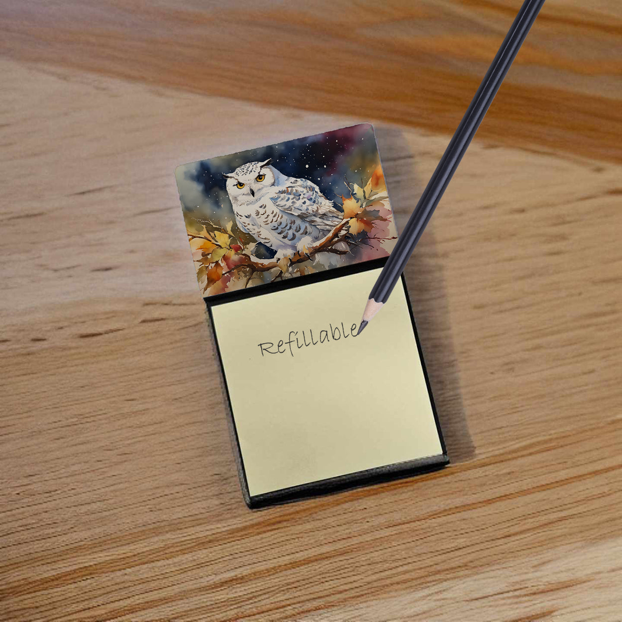 Sticky Note Holder featuring breed specific Snowy Owl artwork. Add a touch of creativity and flair to your desk with the Decorative Sticky Note Holder from Caroline's Treasures. This uniquely designed sticky note dispenser will not only keep your notes in one place but also add an artistic element to your workspace. The top of the holder features beautiful artwork that is sure to catch the eye. Crafted for convenience, this sticky note holder comes with a small pad of 3-inch x 3-inch sticky notes at the bottom. The holder is designed for easy refilling; simply remove the last sheet of a new sticky note pad and stick it onto the board. This feature ensures you will always have sticky notes at your disposal. This Sticky Note Holder makes a perfect gift. Be it for your colleagues at work, your Facebook friends, or even your dog groomer or hairdresser, this versatile product fits the bill. You can use it for making grocery lists, leaving notes for loved ones, or for jotting down important reminders. The bottom board is rigid and can be magnetized by adding a business card size magnet to the back (sold separately). This makes it even more versatile, allowing you to place it on a refrigerator or any other magnetic surface. With this Sticky Note Holder, you're not only organizing your notes, but also personalizing your space.