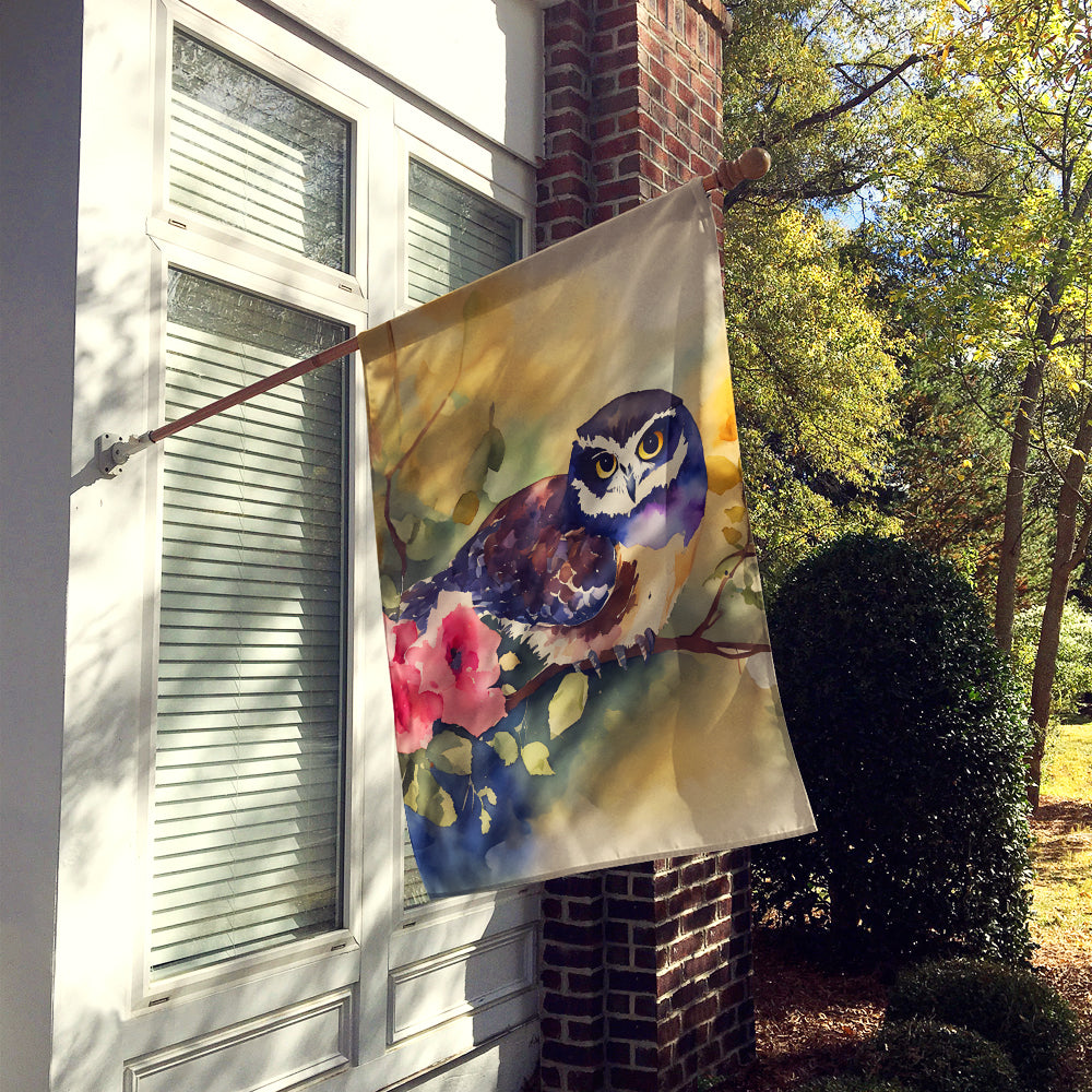 House Flag featuring breed specific Spectacled Owl artwork. Presenting our Heavy Duty Polyester House Size Decorative Sleeve Pole Flag, a vibrant addition to enhance the aesthetic appeal of your home. This large decorative flag, measuring approximately 28 x 40 inches, offers ample coverage and visibility. Each flag is meticulously sewn and made individually, ensuring a unique piece that may slightly vary in size. It's a sleeve pole flag, designed to fit a standard decorative flag pole effortlessly. Please note that the flag pole and bracket are not included and should be purchased separately. What sets our flag apart is its dual-sided print. The design is mirrored on both sides of the fabric, allowing for uniform visibility regardless of the angle. Printed in full color, our flag showcases vibrant hues that truly stand out. To ensure lasting vibrancy and durability, the dyes are heat-set into the fabric. This ensures your flag remains bright and captivating through various weather conditions. Elevate the look of your home with our Heavy Duty Polyester House Size Decorative Sleeve Pole Flag!