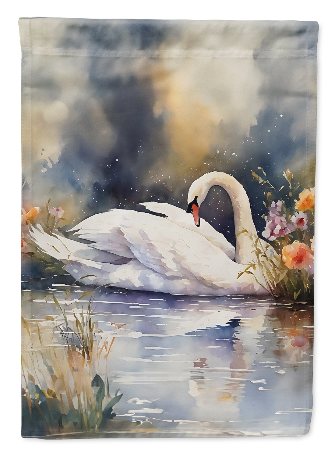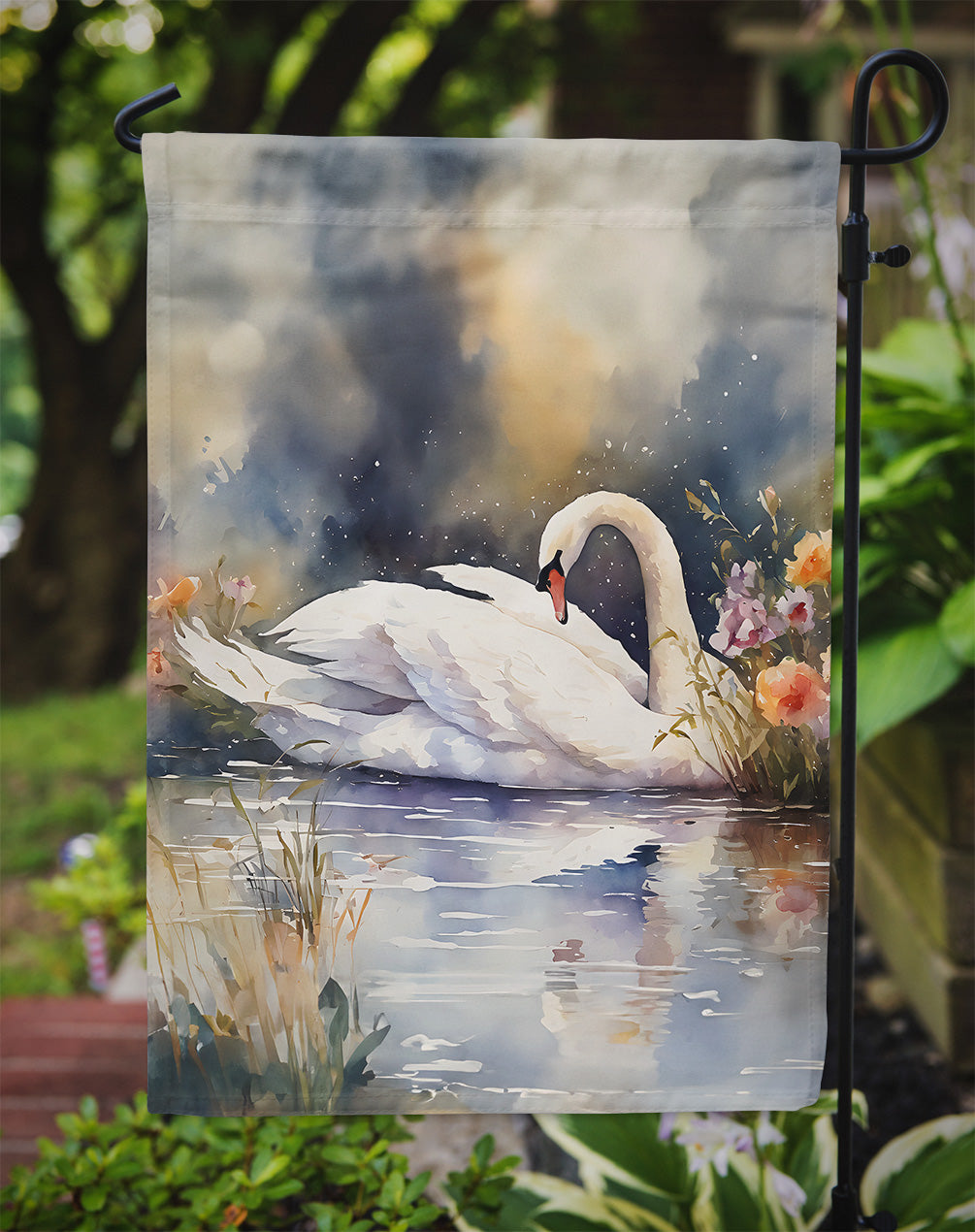 Garden Flag featuring breed specific Swan artwork. Enhance the beauty of your garden, patio, or yard with Caroline's Treasures Decorative Garden Flag, proudly made in the USA. Crafted from two pieces of thick, double-sided polyester fabric, this 2-ply garden flag is designed to withstand various weather conditions, making it water-resistant and weatherproof. Featuring correctly readable words on both sides, this garden flag offers a delightful visual experience from any angle. With its heavier weight, it stands out among other garden flags, ensuring stability and durability even in wind, rain, and snow. Measuring approximately 11 1/4 inches by 15 1/2 inches, this flag allows you to personalize your outdoor decor. It comes with a 1 1/2-inch sleeve sewn in, allowing easy attachment to any standard garden flag stand or garden size porch hanger (sold separately). Make a statement in your outdoor space with Caroline's Treasures Decorative Garden Flag, a vibrant and high-quality flag that adds color and personality to your surroundings. Proudly made in the USA, it's a symbol of quality craftsmanship and attention to detail.