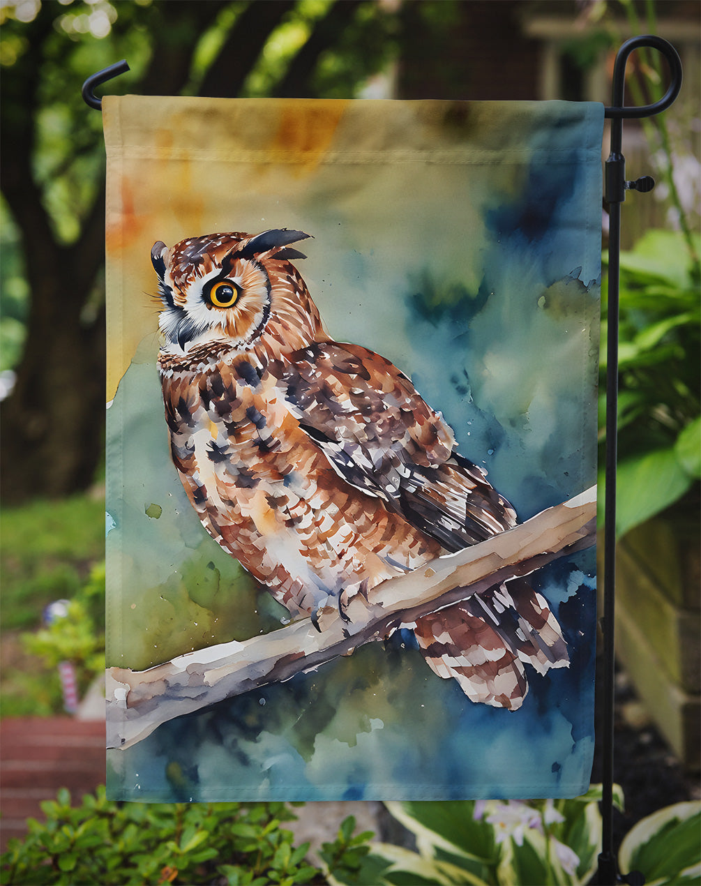 Garden Flag featuring breed specific Tawny Owl artwork. Enhance the beauty of your garden, patio, or yard with Caroline's Treasures Decorative Garden Flag, proudly made in the USA. Crafted from two pieces of thick, double-sided polyester fabric, this 2-ply garden flag is designed to withstand various weather conditions, making it water-resistant and weatherproof. Featuring correctly readable words on both sides, this garden flag offers a delightful visual experience from any angle. With its heavier weight, it stands out among other garden flags, ensuring stability and durability even in wind, rain, and snow. Measuring approximately 11 1/4 inches by 15 1/2 inches, this flag allows you to personalize your outdoor decor. It comes with a 1 1/2-inch sleeve sewn in, allowing easy attachment to any standard garden flag stand or garden size porch hanger (sold separately). Make a statement in your outdoor space with Caroline's Treasures Decorative Garden Flag, a vibrant and high-quality flag that adds color and personality to your surroundings. Proudly made in the USA, it's a symbol of quality craftsmanship and attention to detail.