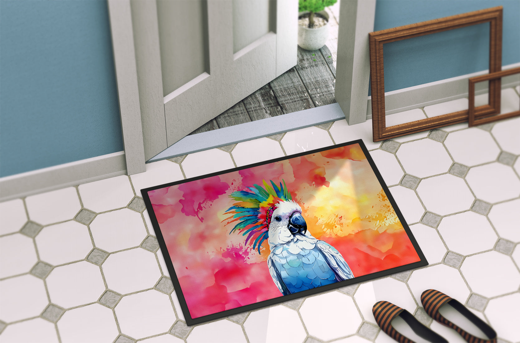 Doormat featuring breed specific Cockatoo artwork. Welcome your guests in style with our Artwork Door Mat, designed to withstand almost any weather condition. This mat, measuring approximately 24 by 36 inches, is held together by durable black binding tape. Its top layer, composed of polyester felt, is dyed with the eye-catching image you see on the mat. A few layers below provide the mat with stability, while its rubber bottom is stamped to help prevent slipping and ensures safety. Our mat works wonderfully as both an indoor or outdoor door mat. For cleaning, simply hose it off with water or use a power washer - no need for any cleaner that produces suds. Avoid scrubbing with a brush, instead, opt for the vacuum on floor setting. Designed manufactured and printed in the USA, this mat is a perfect addition to your porch, outdoor kitchen, entryway, or any indoor space. Its unique design makes it a charming decorative rug that greets your guests and adds a stylish touch to your home decor.