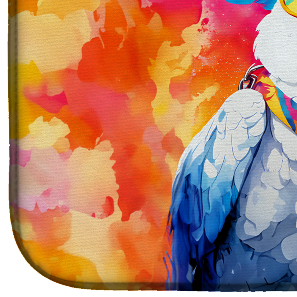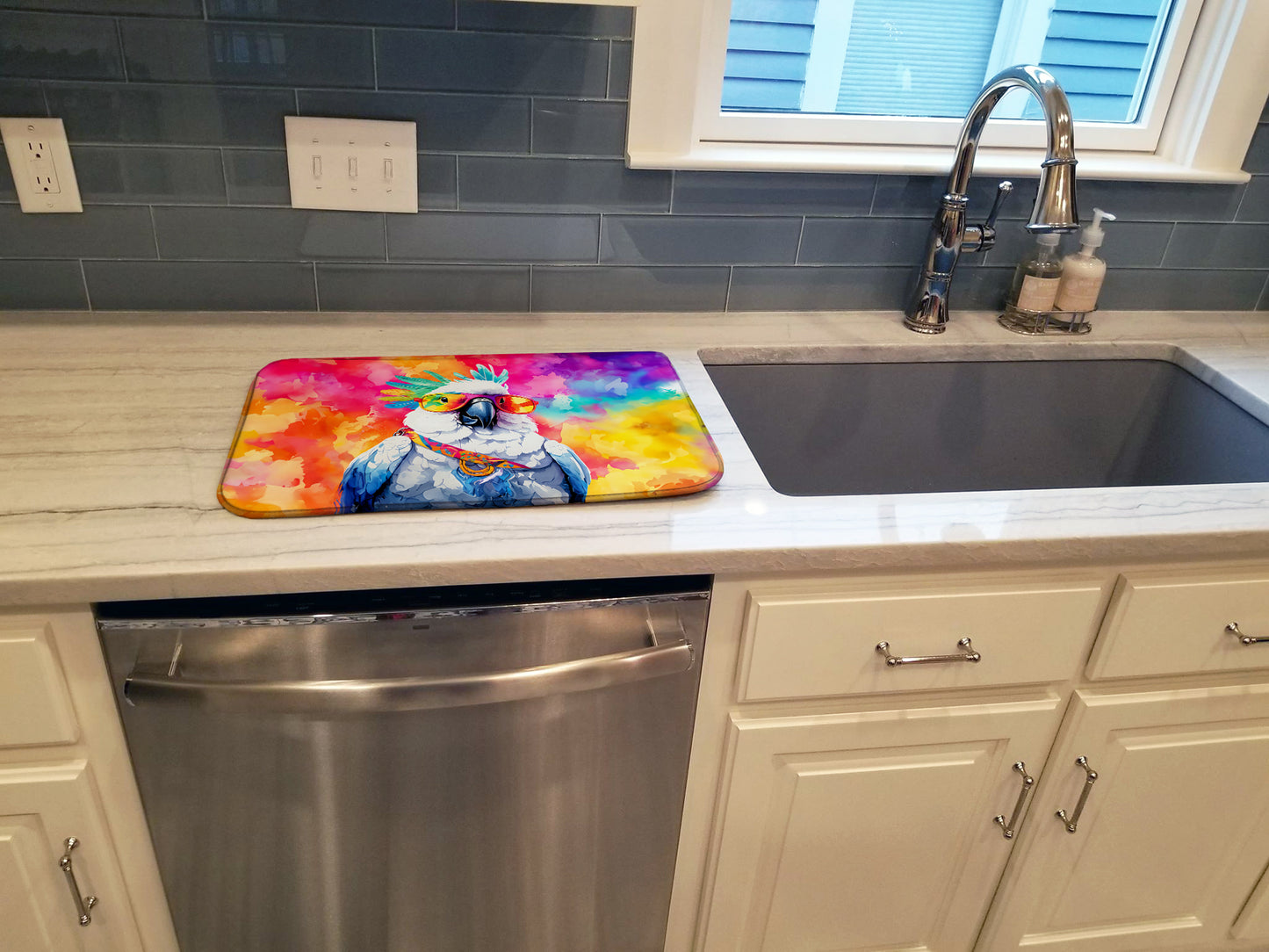 Dish Drying Mat featuring breed specific Cockatoo artwork. Say goodbye to messy countertops and soggy dish towels with our innovative dish drying mat. Our high-quality dish drying pad is designed to keep your countertops dry while offering a stylish and efficient solution. Whether you're air drying dishes, glasses, stemware, silverware, pots, pans, bottles, or even fruits and vegetables, our dish mat is the perfect choice. The 14 inches x 22 inches size fits most counters and dish drying racks, and the non-slip design ensures stability. Made with water-absorbent polyester and a polyurethane foam insert, our dish drying mat is not only functional but also durable. It's machine washable and printed in the USA for long-lasting use. The beautiful artwork adds flair to your kitchen decor, making it a perfect housewarming gift or present for any occasion. Upgrade your kitchen experience with our absorbent and versatile dish drying mat.