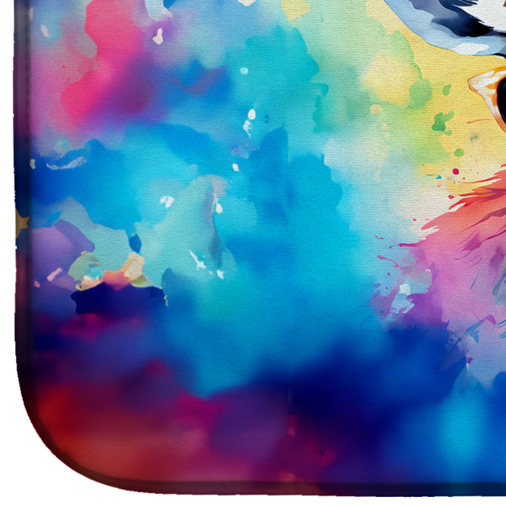 Dish Drying Mat featuring breed specific Deer artwork. Say goodbye to messy countertops and soggy dish towels with our innovative dish drying mat. Our high-quality dish drying pad is designed to keep your countertops dry while offering a stylish and efficient solution. Whether you're air drying dishes, glasses, stemware, silverware, pots, pans, bottles, or even fruits and vegetables, our dish mat is the perfect choice. The 14 inches x 22 inches size fits most counters and dish drying racks, and the non-slip design ensures stability. Made with water-absorbent polyester and a polyurethane foam insert, our dish drying mat is not only functional but also durable. It's machine washable and printed in the USA for long-lasting use. The beautiful artwork adds flair to your kitchen decor, making it a perfect housewarming gift or present for any occasion. Upgrade your kitchen experience with our absorbent and versatile dish drying mat.