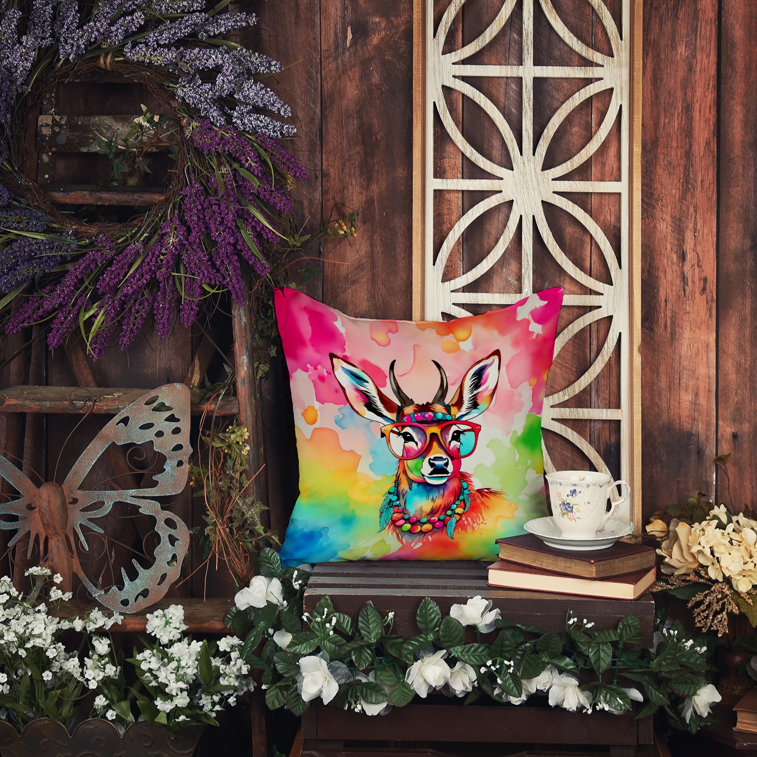 Hippie Animal Deer Throw Pillow