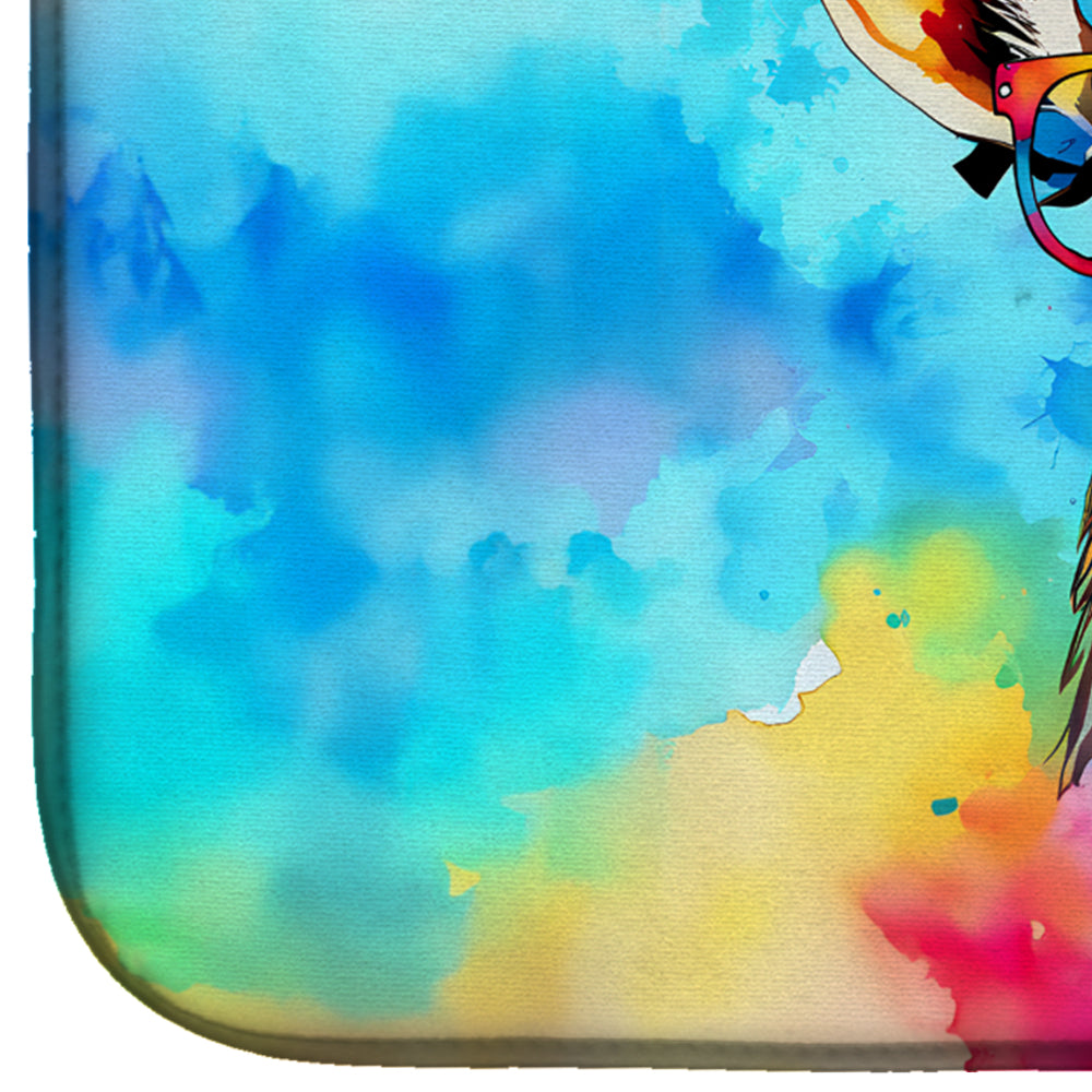 Dish Drying Mat featuring breed specific Deer artwork. Say goodbye to messy countertops and soggy dish towels with our innovative dish drying mat. Our high-quality dish drying pad is designed to keep your countertops dry while offering a stylish and efficient solution. Whether you're air drying dishes, glasses, stemware, silverware, pots, pans, bottles, or even fruits and vegetables, our dish mat is the perfect choice. The 14 inches x 22 inches size fits most counters and dish drying racks, and the non-slip design ensures stability. Made with water-absorbent polyester and a polyurethane foam insert, our dish drying mat is not only functional but also durable. It's machine washable and printed in the USA for long-lasting use. The beautiful artwork adds flair to your kitchen decor, making it a perfect housewarming gift or present for any occasion. Upgrade your kitchen experience with our absorbent and versatile dish drying mat.