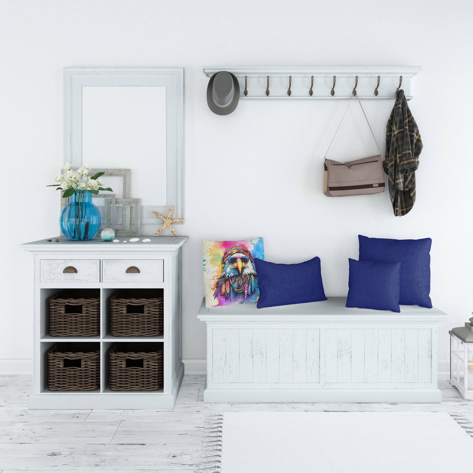 Throw Pillow featuring breed specific Eagle artwork. Revitalize your outdoor or indoor living space with Caroline's Treasures 18x18 Fabric Decorative Pillow. With a generously sized dimension of approximately 18 inches by 18 inches, this pillow makes a comfortable and aesthetic addition to any seating area. Made from a unique, water-resistant material developed by Caroline's Treasures, the pillow sham is 100% polyester fabric that's durable and ready to weather any condition. Its vibrant, full-color artwork will not fade over time as it is dyed with color-fast dyes. Whether you place it on your patio furniture, porch, veranda, or indoor couch, its soft canvas fabric ensures a cozy experience. The pillow is handcrafted in the United States, featuring a sham created from three pieces of fabric and a polyester insert for enduring shape and overstuffed comfort. Despite being robustly built to endure the outdoors, it is as soft and snug as your favorite indoor cushions. Please note, as all our pillows are handmade, sizes may vary slightly, adding to the charm of this unique decorative item.